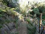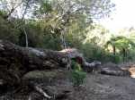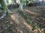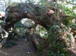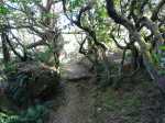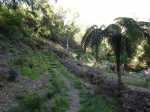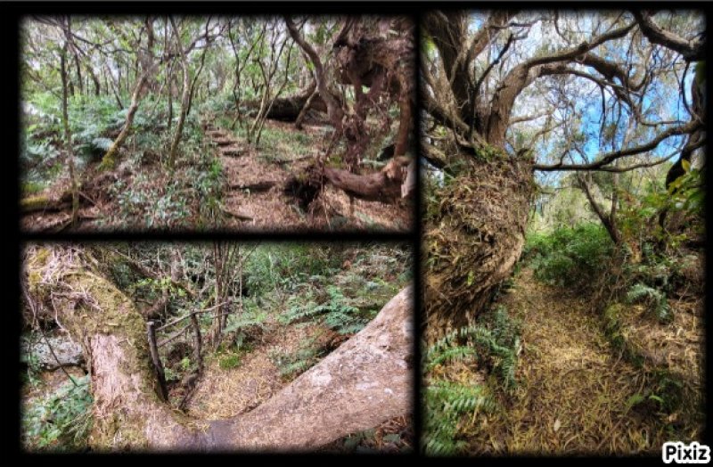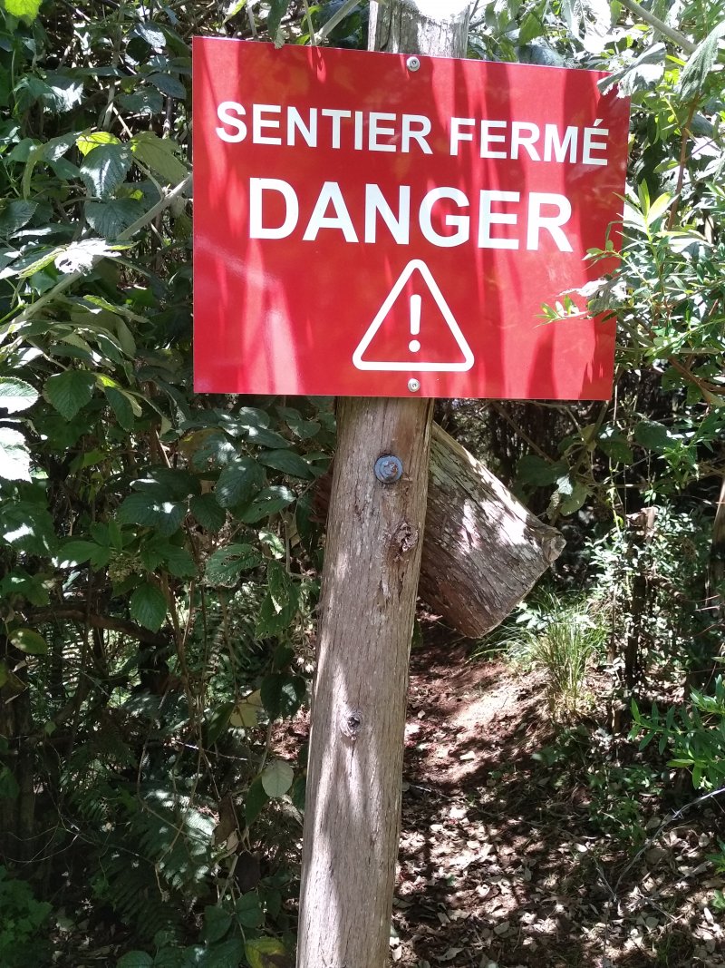 La randonnée débute près d'un panneau indiquant clairement le départ après avoir pris connaissance des nombreuses explications de l'affiche en place afin de mieux connaître l'association AVE2M (Photo 3). Quelques mètres plus loin, un nouveau panneau gravé dans le bois indique l'emplacement de pique-nique qui peut s'avérer utile en fin de parcours (Photo 4). Impossible de se perdre sur ces 1000 mètres très bien balisés de tâches de peinture rouge (Photo 5). On se retrouve très vite près de monstrueux tamarins dont certains ont souffert des cyclones mais tiennent toujours fièrement debout (Photo 6). D'autres ont eu moins de chance et gisent au sol où ils mettrons des décennies avant de disparaître, rongés par les insectes et les champignons (Photo 7). Le sentier est très agréable, tantôt plat et bordé de récentes plantations (Photo 8) tantôt pentu sur des portions constituées de grosses marches de bois de tamarin (Photo 9). Il s'approche ou s'éloigne de la route et frôle par deux fois la petite ravine qui se jette un peu plus bas dans la Rivière d'Abord. A la saison, les arums fleuris donnent de belles tâches blanches dans la verdure (Photo 16). Par moments, on passe au milieu des tas de plantes enlevées du sol ou des grands arbres et qui sèchent lentement au sol. Cette éradication a créé de belles et larges clairières envahies de lumière (Photo 20). On se retrouve très vite à un nouveau panneau gravé annonçant l'arrivée (Photo 23). Tout près, avant de rejoindre la route, remarquer l'énorme arche naturelle créée par un imposant tamarin couché au sol (Photo 24). Tout près, une croix fleurie rappelle sans doute un accident survenu sur les lieux qui aura coûté la vie à un jeune de 22 ans.