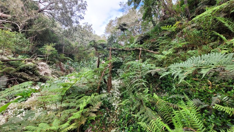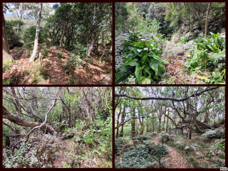 A deux pas de la Rivière d'Abord dans les Hauts du Tampon se trouve une petite forêt de tamarins des Hauts appartenant à la famille Avril. Elle a confié les 121 hectares de ce bois envahi par toutes sortes d'invasives à l'association AVE2M qui l'a remarquablement remis en valeur avec l'aide des emplois verts de l'association. L'association œuvre principalement dans la préservation des milieux naturels et la sauvegarde des pétrels noirs et de Barau qui sont menacés d'extinction. Le circuit est beaucoup trop court pour organiser une randonnée spéciale à moins d'habiter le Tampon. Mais c'est l'occasion unique d'y aller se promener un jour de balade dans la tamarinaie de la Ravine Blanche ou au sentier botanique de Notre Dame de la Paix. Une aire de pique-nique, dénudée, a été prévue près du départ du sentier. Il n'y a pour le moment ni table ni banc et il faudra prévoir une couverture à poser au sol. Le circuit, qui ne prend que quelques minutes, permet de côtoyer de magnifiques tamarins des Hauts et de longer un affluent de la Rivière d'Abord au fond rocheux bordé d'arums.