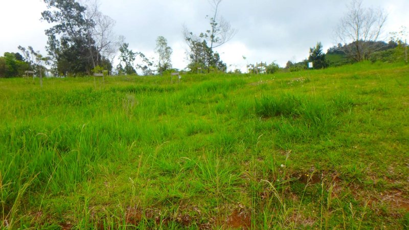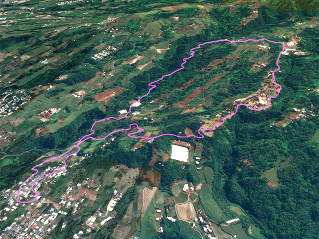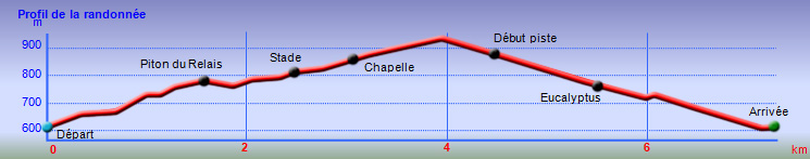 La randonnée débute à Manapany les Hauts, au début de la route du Relais, proche de l'arrêt de bus "Chemin du Relais". Au départ, la montée est un peu raide entre les cases. Elle serpente et rejoint une petite prairie sur la droite (Photo 1). On remarque à cet endroit des inscriptions guidant les concurrents de la course de l'Ail sur la piste qui file sur la gauche. On passera à ce même endroit en fin de boucle. Poursuivre sur la petite route en pente faible, passer un gros eucalyptus (Photo 2) et rejoindre un peu plus haut le croisement avec la piste venant du Piton du Relais (Photo 4). Prendre à droite et monter en direction des antennes que l'on aperçoit par-delà la végétation. La piste est tout d'abord caillouteuse puis se couvre de terre et d'herbe plus haut d'où l'on bénéficie de larges panoramas sur Saint-Pierre, Petite Île et le Piton de Mont vert. De l'autre côté, ce sont les cultures et les vergers autour des petites fermes disséminées dans la campagne (Photo 5). Le piton est presque plat et dominé par deux hautes antennes (Photo 7). La piste partant sur la droite est privée et fermée d'une chaîne. Profiter tout de même du point de vue sur la campagne du côté de Mont Vert (Photo 8) et emprunter l'autre piste qui contourne le piton par le nord (Photo 10). Elle traverse des zones très vertes avant de se scinder en deux (Photo 11). Il est possible d'emprunter les deux itinéraires. La piste se poursuit vers des serres sur la droite tandis que le sentier passe sous les poivriers dans de grandes herbes. On arrive très vite aux installations destinées aux amateurs de modélisme. Le terrain est plat et les vues donnent jusqu'au Morne Langevin (Photo 12). Le passage peut se faire n'importe où puisque de nombreuses pistes d'entraînement sillonnent les herbes (Photo 13). On aperçoit d'ici la route et les premières installations du relais. Rejoindre en descendant la petite colline et retrouver la route pour 4 ou 5 mètres avant de bifurquer sur la droite pour emprunter le sentier qui remonte vers le terrain de sport (Photo 14). On longe au plus près le bord de la zone en profitant de nouveaux points de vue sur l'océan en direction de Petite Île et Manapany les Bas. On frôle une dizaine de kiosques en marchant sur la piste, le sentier ou dans l'herbe puis on retrouve la route à hauteur de la chapelle du Relais (Photo 15). Emprunter cette route qui remonte sur 600 mètres en direction de serres sur la droite avant de bifurquer à gauche sur une petite route qui traverse des cultures avant de descendre vers de habitations (Photo 17). Passer entre les dernières cases et prendre la piste à droite qui débute à une ancienne culture de chouchou qui a tout envahi (Photo 18). On rencontre encore quelques propriétés mais les panneaux d'interdiction guident sur la bonne piste. On entame une longue descente en pleine nature qui ramènera au village. La piste, de plus en plus étroite, est tout d'abord envahie de hautes herbes mais le passage régulier des chevaux permet de marcher sur un semblant de sentier au milieu de ces herbes (Photo 19). Impossible de s'égarer tant les abords de la piste sont touffus de toutes les pestes qui l'envahissent. On pénètre dans une petite forêt d'eucalyptus traversée par la piste en pente douce mais glissante par endroits (Photo 20). Les bambous font place aux eucalyptus et aux jamrosas puis on arrive à une grande surface couverte de serres (Photo 23). La piste passe entre elles et se poursuit vers des champs de canne d'où l'on retrouve des vues sur la mer (Photo 24). On longe d'anciennes cultures qui disparaîtront rapidement si des travaux n'y sont pas entrepris (Photo 25) ou des champs de canne déjà envahis de tabac bœuf (Clidemia hirta : Photo 26). On se retrouve enfin près de jolies petites cases desservies par de larges pistes bétonnées (Photo 27) puis on termine à la route principale par l'Impasse des Hortensias. Le véhicule est à une centaine de mètres sur la gauche.