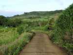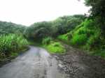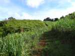 Lorsque l'on effectue le parcours dans le sens proposé par la fiche, vers la fin de l'itinéraire on retrouve à un moment donné le chemin Léopold Lebon qui monte au Domaine du Relais. On le prend en descente et on bifurque ensuite tout de suite à droite sur une piste dans les champs de canne. La trace nous fait ensuite tourner à gauche dans un virage pour retrouver plus loin l'impasse des Hortensias. Mais on ne peut plus tourner à gauche, tout a été envahi par les cannes.