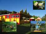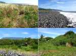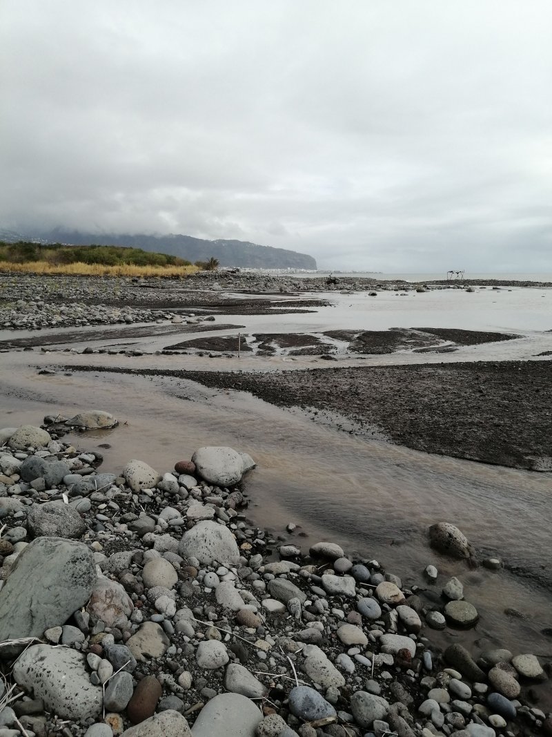 La randonnée débute près de l'aéroport ou d'immenses zones de stationnement se trouvent sur la droite dès l'arrivée au deuxième rond-point. La piste est facile à trouver car un passage piéton en marque le début. Nul besoin de réfléchir ni de se munir d'un GPS car le circuit est des plus instinctifs. Suivre simplement la piste cyclable qui passe parfois à moins de deux mètres de la RN1 (Photo 1). Un peu plus loin, les inconditionnels emprunteront le sentier ombragé ( très encombré de détritus) au niveau du rond-point de Duparc (Photo 2). La marche est extrêmement facile en très légère descente (Photo 3). Cet itinéraire, nommé sentier littoral nord, oblique sur la gauche en direction de la Mare qu'on repère à sa cheminée métallique. Guetter sur la gauche une courte piste qui rejoint en 50 mètres la chapelle tamoule de la Mare. Le temple est modeste mais il est très connu des fidèles qui s'y réunissent régulièrement (Photo 4). Outre le temple jaune et rouge, on peut y voir des frangipaniers décorés de colliers de fleurs séchées et une aire charbonnée, vestige de la dernière marche sur le feu. Une statue à l'avant représente Hanumān, le Dieu Singe, patron des lutteurs, dieu de la sagesse. Il est si fort qu'il peut soulever des montagnes comme le montre d'ailleurs son effigie. Rejoindre ensuite l'ancienne usine de la Mare réhabilitée en bureaux. La case créole, qui devait être le bâtiment de la direction de l'époque, est très bien conservée à l'ombre de ses grands palmiers royaux (Photo 8). Tout près, la grande grue qui servait au déchargement de la canne est restée sur place (Photo 7). Rejoindre le port de Sainte-Marie en empruntant une courte passerelle (Photo 9) et en suivant la petite route. Le port est important à en juger par le nombre de barques et bateaux de pêche qui sont à l'anneau (Photo 11). On profite à partir du port de larges panoramas sur les sommets dont le Cimendef et la Roche Ecrite que l'on verra jusqu'à la fin de la boucle (Photo 15). Débute une remontée des pistes de l'aéroport en longeant tout d'abord une route bétonnée bordée d'énormes plots en béton sensés protéger des vagues (Photo 12). Cette route extra plate se poursuit par une piste le long du grillage (Photo 16). Après les pluies, les ornières créent de larges flaques qui peuvent mouiller les pieds (Photo 17). L'astuce consiste à marcher dans les épineux qui bordent la piste ou à descendre sur la plage de galets à la recherche de bois flottés (Photo 18). Par temps sec, poursuivre sur la piste puisqu'on aura d'office une partie de plage de galets à la fin du grillage. Une centaine de mètres plus loin, on rejoint justement la fin du grillage de l'aéroport. Repérer, sur la droite après un bosquet, l'étroit sentier qui rejoint les galets. Une fois sur les galets, filer au plus près des vagues et marcher plus de 300 m, traverser plusieurs fois des bras étroits de la Rivière des pluies et repérer un cocotier et un bar en tôle. Obliquer vers la gauche 20 mètres après le cocotier et rejoindre la piste (Photo 20). A la saison, la traversée de la Rivière des Pluies est instructive lorsque les pêcheurs de bichiques installent leur matériel et ne sont pas avares en explications sur les méthodes de pêche (Photo 21). A la piste cyclable qu'on retrouve près de la voie rapide, prendre à gauche pour rejoindre le point de départ de la boucle. En empruntant le même type de piste qu'au départ, le cimetière la Peste ne se trouve qu'à un petit kilomètre sur la droite pour ceux qui voudront effectuer l'aller-retour (Photo 23). Ce minuscule cimetière se situe 100 m après le gué de la Ravine du Chaudron. Le retour à Gillot s'effectue rapidement, toujours sur des pistes cyclables de goudron rouge bordées de palmiers, flamboyants et autres arbres qui procurent de l'ombre (Photo 24). On rejoint la Rivière des Pluies enjambée par un large pont qui offre aux piétons et cyclistes la possibilité d'effectuer la traversée à l'ombre (Photo 25). Seule hésitation du parcours : prendre à droite à la sortie du pont pour marcher de l'autre côté de la RN1 et rejoindre l'aéroport en passant sous la route par un tunnel éclairé.