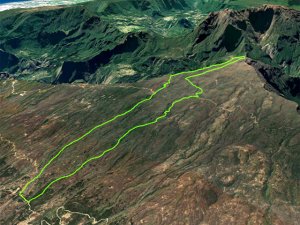 Cette boucle passe à nouveau sur la piste créée après les incendies de 2010 et 2011. Fort heureusement, aucun incendie, volontaire ou non, n'a été constaté depuis, en espérant que plus jamais un tel désastre se reproduise. La piste a souffert et aurait beaucoup de mal à remplir sa mission en cas de malheur. Dans le bas, la végétation a repoussé et des arbres tombés au sol ralentissent sur les 300 premiers mètres. Plus haut ce sont de profondes ornières créées par l'écoulement des eaux qui détruisent la piste. La montée est importante mais constante, du départ jusqu'au sommet du Grand Bénare. Il vaut mieux, pour effectuer la boucle, avoir des chevilles à toute épreuve. Aucun sentier ne vaut mieux qu'un autre dans toute la région et il est bon de savoir avant de partir que ces cailloux seront inévitables même si l'on décide de suivre la trace en hors sentier. Heureusement, de nombreux points positifs permettent d'oublier ces inconvénients : on profite de plusieurs panoramas sur la mer en montant ou sur les cirques en arrivant, On rencontre des lieux historiques avec la Glacière ou les puits de stockage de la glace, Enfin, la Grande Ravine et ses dizaines d'affluents mériteraient plusieurs jours à les pratiquer pour y découvrir petites cascades et grands bassins.