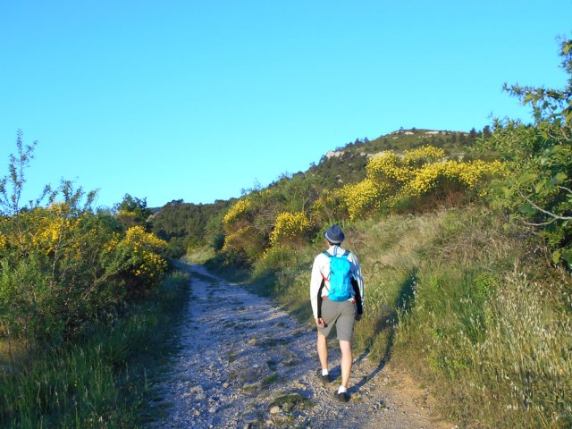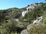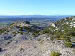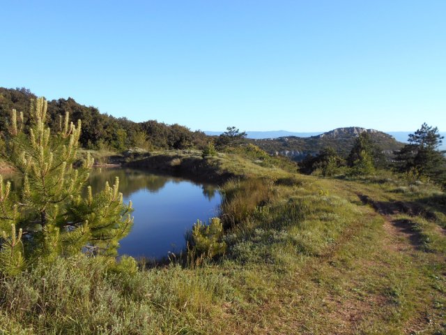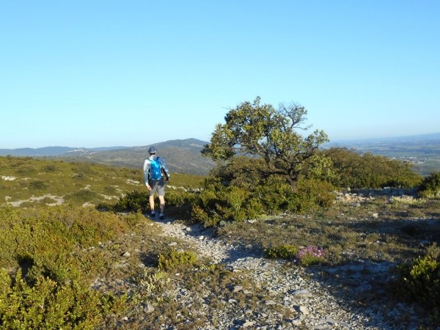 La randonnée débute ici à la chapelle (Photo 1) mais un grand emplacement de stationnement se situe aussitôt après avoir franchi l'autoroute en partant quelques mètres sur la gauche près d'une réserve d'eau pour l'incendie. Partir sur la piste en faible montée et rejoindre les bâtiments du Four à Chaux en prenant à droite à la fourche des trois pistes. Laisser les bâtiments puis continuer sur la piste dans les genêts et la garrigue (Photo 2). Ne pas manquer, 200 mètres plus loin le sentier qui part sur la droite et grimpe, toujours dans les genêts vers le rempart de calcaire qu'on aperçoit sur la droite (Photo 3). Il chemine tout d'abord à plat puis monte assez fortement sur une importante couche de petits cailloux qui roulent sous le pied. On atteint le bord du petit rempart longé par le sentier qui part à gauche en direction du Roc Gris (Photo 4). Le cheminement ne pose pas de difficulté hormis ces zones très caillouteuses (Photo 5). Plus on monte et plus les panoramas grandissent sur la région de vignoble, de forêts de résineux et de brandes (Photo 6). On atteint le Roc Gris rapidement pour profiter d'une vue splendide sur le Mont Alaric qu'on atteindra bientôt (Photo 7). On appelle également ce roc le Saut de Roland et la légende dit qu'il aurait sauté d'ici avec son cheval en direction du Pic de Nore à 20 km à vol d'oiseau !! On peut effectivement sauter de ce rocher mais on tombe en général au pied du roc vertical (Photo 8) ! Poursuivre le long du rempart dans une végétation qui a beaucoup de mal à survivre dans cette région très battue par les vents forts (Photo 9). Plusieurs sentiers traversent ces landes d'altitude mais le principal est aisé à suivre. Partir sur la gauche à une clairière ressemblant à une prairie et trouver la brèche, le départ de l'étroit sentier qui descend vers la Métairie Vidal. Les premiers mètres semblent acrobatiques mais se passent sans danger (Photo 10). On parvient, après une courte mais forte descente aux ruines de la métairie abandonnée sous les arbres au pied de la falaise calcaire (Photo 11). Emprunter le GR77 qui traverse l'ancienne ferme et partir sur une courte distance vers le sud. Continuer vers la Métairie Sans Fin en montée constante. On coupe la piste montant à la tour de gué avant de parvenir aux mares isolées de la métairie (Photo 12). Partir vers la droite en passant dans les ruines de cette ancienne fermette et près d'une nouvelle mare où l'on remarque de nombreuses traces de sangliers qui viennent ici se rafraîchir. Le sentier est de plus en plus étroit mais ne se perd jamais dans la végétation (Photo 14). Plus on grimpe et plus les falaises se remarquent à travers les branches de pins ou de chênes (Photo 15). Elles semblent infranchissables mais il suffit de les contourner pour retrouver le sentier qui grimpe au Signal d'Alaric (Photo 16). Avant d'entamer cette montée, partir vers le rocher qui domine le plateau (Photo 17). Il s'atteint en deux minutes mais vaut le détour pour les paysages qu'il propose. On est presque à mi-chemin et ce promontoire est le lieu idéal pour la pause, à moins qu'un vent à décorner les bœufs ne fasse envoler le sac et ses provisions. On aperçoit au loin les Pyrénées et on domine le village de Camplomg-d'Aude. On devine le GR36 qui descend dans la vallée de la Combe d'Alaric (Photo 19). Il est proposé ici d'en effectuer un court tronçon pour se rendre au Roc de l'Aigle. Après cet agréable repos, reprendre vers la falaise et la contourner par la gauche pour entamer la courte montée vers l'antenne qu'on remarque au loin (Photo 20). Le Signal d'Alaric se rejoint rapidement. Avant de poursuivre vers Moux, oser un écart sur le GR36 jusqu'au Roc de l'Aigle. Le haut de la falaise est superbe avec des fleurs de toutes les couleurs, des aromatiques sauvages et des sédums qui ont pourtant beaucoup de mal à vivre sur cette rocaille aride (Photo 21). Plus bas, vers le Roc de l'Aigle, le GR est large, caillouteux et en légère descente au début. Admirer de nouveaux panoramas sur les Pyrénées, enneigées une bonne partie de l'année (Photo 22). Profiter des multiples traces dans la garrigue pour remonter au mirador. Près de ce lieu d'observation récent trône une cabane en pierre qui devait sans doute servir de poste d’observation incendie (Photo 23). Retrouver le GR77 pour entamer la descente vers Moux qu'on aperçoit vers l'autoroute. Il y a peu de panneaux ou de balisage mais on a vite fait de le repérer aux couleurs habituelles des GR. On a sous les yeux la chaîne qu'on a dominée en venant par le Roc Gris (Photo 24). Après une descente caillouteuse dans une végétation très touffue, on longe à mi-rempart un plateau qui domine un affluent du Ruisseau des Baux (Photo 25). On parvient à la piste tortueuse qui monte au signal. La suivre sur environ 400 mètres jusqu'à un virage à gauche. Un panneau donnant la direction de Moux rassure sur la direction à emprunter. Débute une longue descente sur un sentier caillouteux, rectiligne qui se moque des courbes de niveaux et bordé un peu partout de miradors de chasse au sanglier. La vue s'étend jusqu'au Pic de Nore et on distingue très bien l'autoroute des deux Mers entre Carcassonne et Lézignan. A 285 m, tourner à droite et partir vers l'est, sur le sentier parallèle à l'autoroute. Plusieurs embranchements peuvent créer des hésitations mais il suffit de suivre le sentier qui paraît le plus fréquenté. Il effectue parfois quelques montées et descentes successives mais c'est facilement qu'on rejoint en sous-bois la grande carrière abandonnée d'extraction du calcaire (Photo 28). Le sentier se transforme en piste en descente douce jusqu'à la petite route empruntée en début de boucle. Partir à gauche, passer sous l'autoroute et rejoindre le tombeau d'Henri Bataille.
