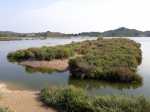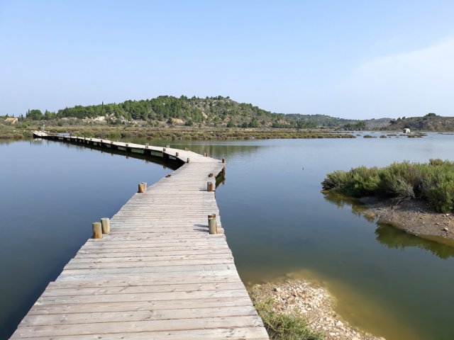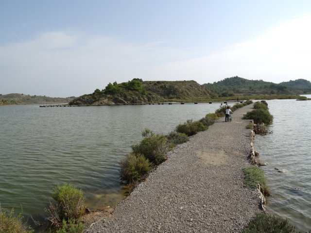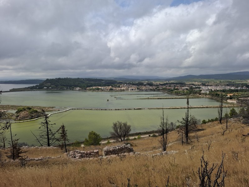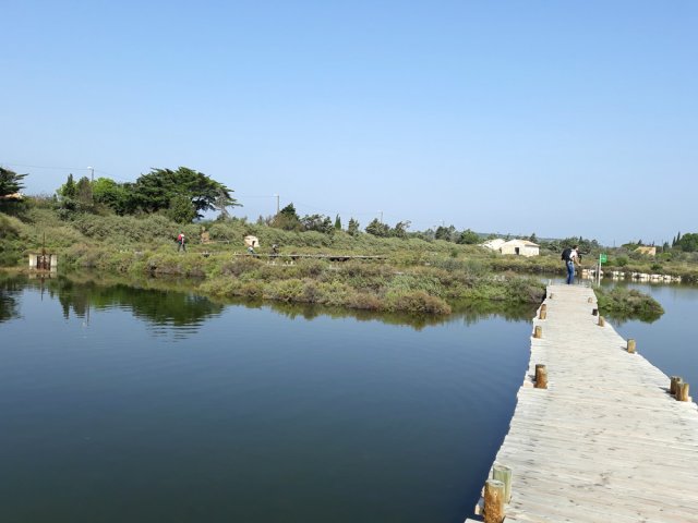 Tout près de Narbonne, entre l'étang de Bages-Sigean et la terre, demeure une petite étendue d'eau salée uniquement alimentée par les eaux de ruissellement. La communication des deux lagunes qui subsistent avec le large s'effectue par un petit canal artificiel. Une lagune, celle que l'on contourne par cette courte balade, a longtemps été utilisée comme saline. L'autre, l'Etang du Doul, d'une superficie de 37 hectares, se visite également par un sentier qui en fait le tour en escaladant le Roc de Berrière qui culmine à ... 72 m ! L'hyperhalinité de cet étang fait de lui le plus salé de la région, voire du territoire français. Toute activité ayant cessé dans la récolte du sel, les deux lagunes sont désormais classées comme réserve ornithologique. On a d'ailleurs la chance de pouvoir repérer toute la faune aquatique habituelle des bordures d'étangs et l'on rencontre souvent des flamands roses et même des cigognes. La boucle est tellement plate, facile et bien aménagée qu'ont pourrait certainement l'effectuer aisément en fauteuil roulant.