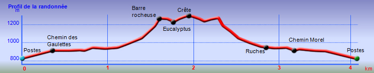 Se rendre à Palmiste Rouge à partir de la Rivière - Rejoindre le village par la descente en lacets puis franchir le Bras Morel - Stationner aux alentours de la poste reconnaissable à gauche de la route à sa couleur jaune - Débuter la randonnée en empruntant la piste bétonnée à gauche du bâtiment - Suivre ensuite le sentier des Gaulettes tout en marches bétonnées - Prolonger par le Chemin des Gaulettes jusqu'au Chemin Morel - Prendre à droite sur 130 mètres pour reprendre le sentier empierré partant sur la gauche - Traverser des habitations puis poursuivre sur une piste jusqu'à des ruches - Prendre à gauche en direction du sommet - Atteindre le point le plus haut et faire demi-tour par le même itinéraire.