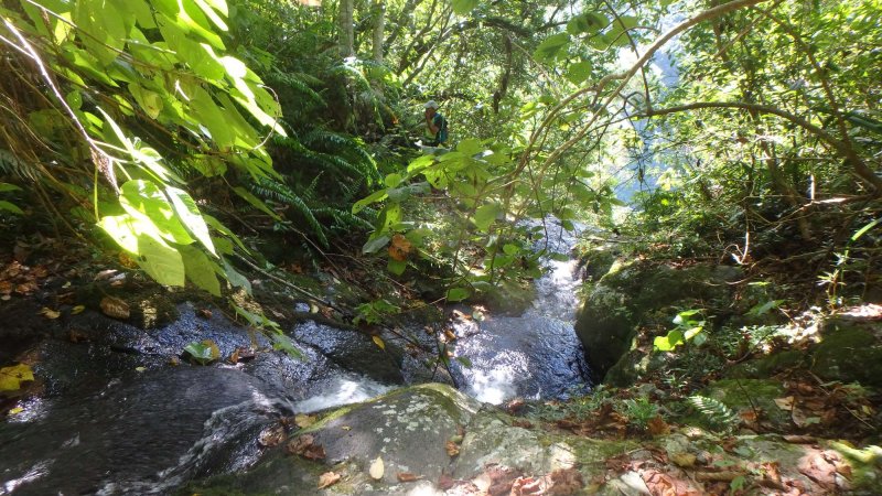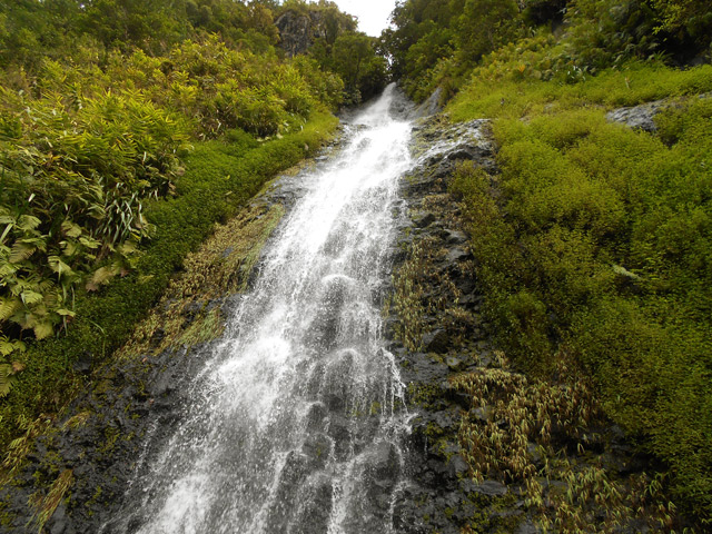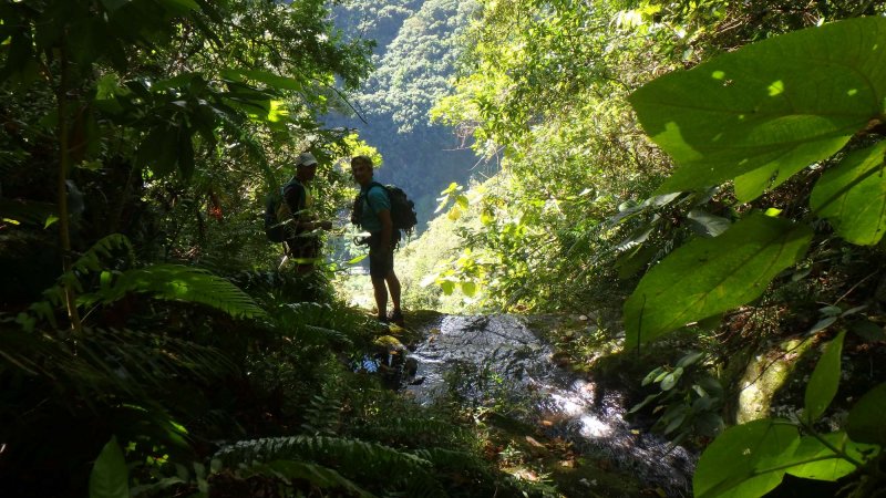 La remontée de la cascade La Faim depuis le pont de l'Escalier
