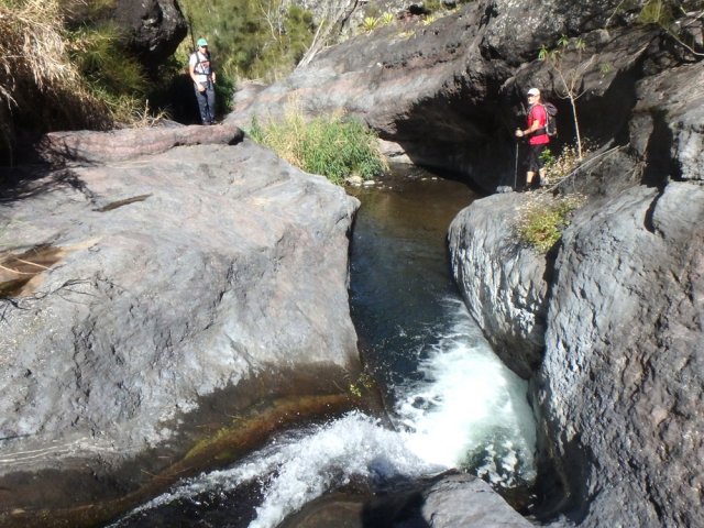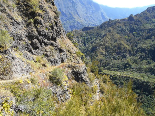 Certains considèrent que remonter une ravine n'est pas de la randonnée, préférant les GRR ou les PR. Voici pourtant une nouvelle boucle aquatique, terrestre et éclectique qui allie découverte de nouvelles cascades et balades sur de beaux sentiers, dont celui de l'Îlet Haute. Pas d'obstacles particuliers le long du Petit Bras de Cilaos ni de ses affluents, si ce n'est quelques cassés ou cascades qui imposent de faire demi-tour. Les hautes cannes fourragères semblent parfois envahir tout le lit de la rivière mais on trouve chaque fois un passage dégagé, quitte à grimper quelques hauts rochers. L'endroit, peu fréquenté par les randonneurs l'est en revanche beaucoup plus par les "pêcheurs" comme en attestent les multiples murettes érigées au fond du torrent, destinées à détourner l'eau provisoirement durant certains prélèvements. La boucle est courte mais il faut tout de même compter plus de 6 heures pour l'effectuer. La remontée vers l'Îlet Haute est, comme toujours, un plaisir sur un sentier aérien offrant de superbes panoramas sur les pitons environnants ou les grands effondrements datant de la création géologique du cirque.