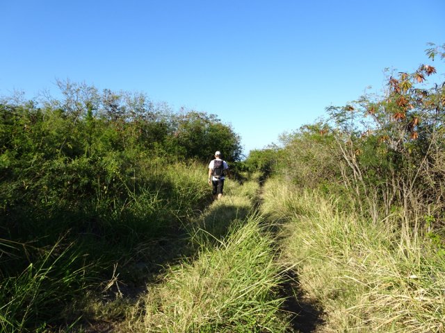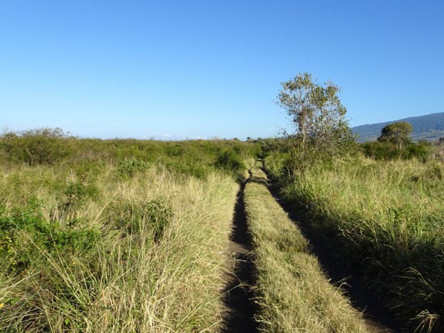 Tous les ans, au mois d'août à Bois d'Olives, est organisé un trail urbain de 15 km ainsi qu'une randonnée de 8 km. La période se prête bien à l'exercice car il fait plus frais dans cette région qui n'est pas réputée pour l'être. Déjà, début octobre, la chaleur est palpable à partir de 9 heures et il vaut mieux partir tôt et avec une réserve d'eau assez conséquente. Le circuit proposé sur cette fiche se rapproche assez fidèlement du trail mais a été modifié afin d'emprunter moins de route et d'agrémenter la boucle par une visite rapide de l'usine sucrière de Pierrefonds. Un cœur, côté intérêt, est déjà surnoté car une bonne partie se passe dans des quartiers de Bois d'Olives qui ne présente aucun intérêt touristique ni aucune case typique méritant un arrêt de quelques secondes. Plus au sud, c'est la RN1, très bruyante, qui accompagne le marcheur sur 2000 mètres. Tout au long du parcours on trouve des détritus de toutes sortes en plus ou moins grandes quantités. Le fait que de multiples pistes desservent encore les savanes incultes de la région a tout pour inciter ces dépôts sauvages qui d'ailleurs, ne doivent jamais être surveillés. Le summum se situe au Lycée de Bois d'Olives où les cours de SVT ont sans doute intégré des chapitres consacrés au développement durable, à la mort lente de notre planète ou à la pollution de l'air et de nos océans. Si la théorie passe bien en salle de cours et si les élèves studieux opinent de la tête devant tant de catastrophes annoncées, il en va autrement des travaux pratiques. Chaque bouteille achetée aux interclasses et chaque sachet de viennoiserie consommée sont systématiquement laissés sur place. Avec des centaines d'élèves dans l'établissement, on est très vite pris de nausées devant ce qui nous attend dans quelques années où le port du masque sera devenu obligatoire en raison de tant d'irresponsabilité. Heureusement que près de 10 km se passent dans la campagne accueillant oiseaux, insectes et fleurs diverses pour nous faire oublier cette misère.
