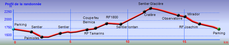 Se rendre à Saint-Paul puis remonter vers le Guillaume ou Plateau Caillou pour prendre la route du Maïdo (multiples croisements et panneaux) - Passer la Petite France, la route des Cryptomerias, la Luge du Maïdo et tourner à droite sur la Route Forestière des Tamarins - Rouler jusqu'au début de la RF du Bernica et stationner - Débuter sur la RF du Bernica et emprunter le sentier des Palmistes - Descendre jusqu'à la piste des Palmistes - Avant la Ravine la Pompe, partir sur la gauche sur le sentier - Retrouver la Rf du Bernica et partir à droite jusqu'à la RF des Tamarins - Bifurquer à gauche sur la RF des Tamarins puis à droite 200 m plus loin pour remonter la sommière Bernica jusqu'à la RF des 1800 - Partir à droite sur la RF 1800 jusqu'à la Ravine Saint-Gilles - Remonter jusqu'au Grand Bord en suivant l'ancien sentier - A la piste de la Glacière tourner à gauche puis à droite jusqu'au sentier de Bord - Longer le rempart et rejoindre l'observatoire de l'Air au premier croisement - Poursuivre vers le Maïdo et bifurquer à gauche vers le mirador du Piton Bernica - Descendre par le sentier jusqu'à la route - L'effleurer puis partir plein Ouest vers la piste des 1800 - Marcher 300 m sur la piste des 1800 avant d'entamer la piste Bolon pour rejoindre le véhicule.