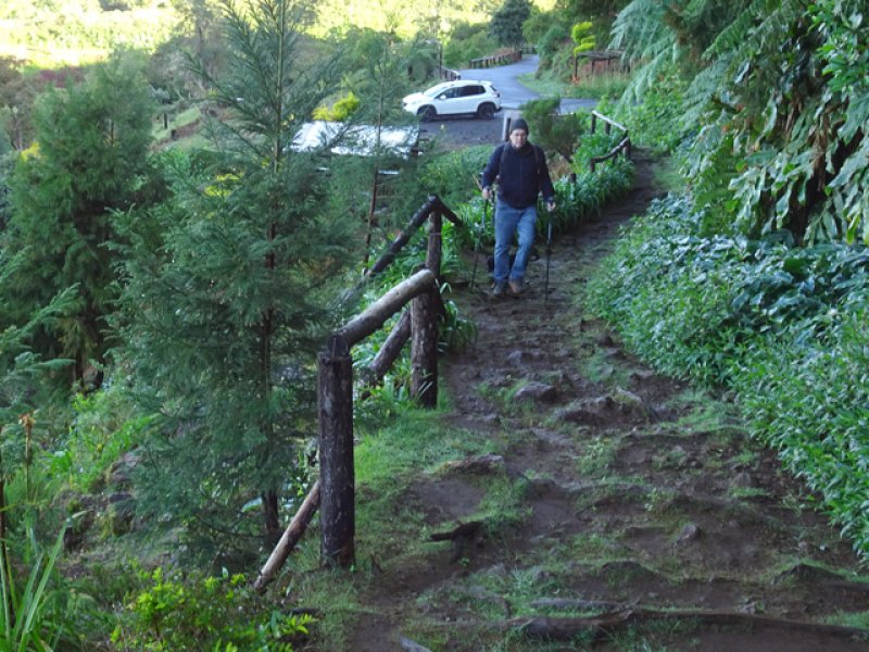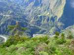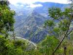 La trace du parking de la fenetre a l’aire de Picnic est fermée il faut descendre par la route. Nous sommes montés par la forêt de crytomerias, végétations magnifiques avant le clou du spectacle la vue sur Cilaos. Le faire le matin avant 11h avant que les nuages l’emportent..