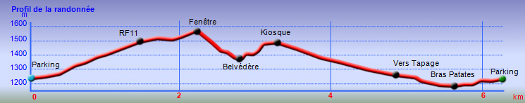 La randonnée débute à l'aire de pique-nique de l'Association "RF des Makes" qui peine sur les pentes afin de maintenir un endroit paysager fréquenté des pique-niqueurs (Photo 1). Entamer la montée vers la Fenêtre par la route. 100 m plus loin, dans le lacet de la route, bifurquer à droite le long d'une barrière bordant l'aire (Photo 2). C'est parti pour deux kilomètres de montée constante, le plus souvent à travers les cryptomerias de plus en plus envahis de longoses (Photo 3). Il faut enjamber les racines parfois hautes pour ne pas chuter. Une personne avertie en valant deux, il en sera ainsi sur les 2 h 30 de la boucle, dont une longue portion en descente. On frôle plusieurs fois le lacet de la route mais on ne quitte pas le sentier (Photo 4). On rencontre très vite une zone de près de 300 m où le manque de passage et d'entretien ralentit, sans pourtant avoir à chercher le sentier du regard (Photo 5). Heureusement, on retrouve assez vite de beaux tronçons où il est impossible de s'égarer (Photo 6). Les cryptomerias ont, par endroits, souffert des vents des derniers cyclones (Photo 7). La pente est constante mais jamais forte, hormis quelques rares et courts raidillons qui coupent un peu les jambes (Photo 8). On marche sous la ligne électrique alimentant les installations de la Fenêtre. Vers la fin, le sentier amène sur la route près d'une table de pique-nique. Suivre alors la route et passer quatre virages avant de retrouver la suite de la montée sur sentier (Photo 9). Ce dernier raccourci plus étroit est bordé de jouvences mais reste très praticable (Photo 10). C'est sur les racines de cryptomerias qu'on termine la montée qui prend trois quarts d'heure à un rythme régulier. Droit devant, le belvédère bordé d'une barrière en bois permet (s'il fait beau) d'admirer le Cirque de Cilaos (Photo 11). Entamer ensuite la descente vers le Bras Patates en passant près des bâtiments de l'émetteur. Il plonge assez fortement dans les bois de couleurs qui ont remplacé pour un temps les conifères (Photo 12). La descente, tout en marches de pierres, est assez sportive (Photo 13). Elle peut être également glissante sur les parties terreuses ou traversées par des racines (Photo 14). En se rapprochant du rempart, les premiers points de vue sur Cilaos se présentent (Photo 15). On repère, un peu plus bas, le sentier remontant l'arête du Piton Cabris où l'on devine d'autres randonneurs en train d'escalader le piton (Photo 16). La descente s'effectue en deux parties de fortes descentes séparées par un tronçon plus plat. Après la deuxième descente, on parvient à un belvédère plus sommaire que celui de la Fenêtre d'où l'on domine les multiples lacets du Pavillon (Photo 17). La vallée du Bras Patates débute au belvédère. On y trouve le sentier longeant le Bras Patates. Partir vers le Piton Cabris, entamer une forte montée dont des escaliers de pierre et de hautes marches qui donnent très vite le ton (Photo 18). Plusieurs passages à ras du rempart sont très bien sécurisés afin de mieux profiter des paysages extraordinaires sur le cirque. Un passage un peu plus vertical est facilité par une courte échelle (Photo 19). Les panoramas durant la montée sont superbes sur tout le Cirque de Cilaos (Photo 20). On aperçoit aussi le sommet du piton qu'on ne tarde pas à rejoindre par de nouvelles fortes montées sur hautes marches. Au sommet, un solide kiosque attend les randonneurs fatigués par la montée (Photo 21). Sur la gauche, un petit sentier se rapproche du sommet réel pour de nouveaux points de vue. Entamer la descente vers Bois de Nèfles en profitant des derniers bois de couleurs. Puis c'est reparti pour trente minutes de racines à l'ombre des milliers de cryptomerias (Photo 22). La descente n'est jamais forte et le balisage blanc sur les troncs indique bien la direction (Photo 23). Ce balisage est inutile car le sentier peut atteindre dix mètres de large à force d'avoir cherché le meilleur passage sans racines. La marche demande de toujours regarder où mettre les pieds pour éviter les racines (Photo 24). Le nombre d'arbres plantés est impressionnant. On peut craindre de randonner si des chantiers d'abattage débutent. Quelques trouées permettent d'observer le Sud de l'île et la vallée du Bras de Cilaos (Photo 25). On rencontre, dans un endroit plus sombre qu'ailleurs, le sentier venant du Tapage. Prendre à droite et poursuivre sur les inévitables racines vers le Bras Patates. Le sentier rencontre celui menant à la Plaine du Bois de Nèfles, encore cultivée. Prendre à droite sur le sentier descendant vers le Bras Patates dont on domine la vallée très boisée (Photo 26). Le sentier, souvent humide, descend lentement vers le nord. Il est un peu terreux, parfois boueux et effectue quelques lacets bordés de jouvences et de longoses. Le Bras Patates se remarque à peine avant de rencontrer le sentier remontant à la Fenêtre. Poursuivre en légère montée sur un sentier devenu plus sec (Photo 27). Poursuivre jusqu'à la piste venant de la gauche et fermée d'une clôture. La vigne marronne a débuté sa lutte et a déjà réussi à chasser les longoses (Photo 28). On arrive aux premiers arrangements paysagers de l'aire de pique-nique. Plusieurs sentiers partent dans tous les sens pour raccourcir ou rallonger la jonction avec le véhicule. On arrive à l'aire de pique-nique fleurie abritant quelques beaux spécimens d'arbres, fin de la boucle.