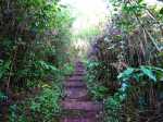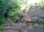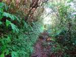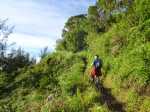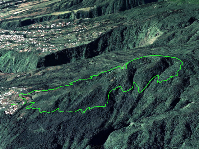 La randonnée débute au parking situé avant la fin de la route du Piton à Bois de Nèfles. Remonter la route jusqu'au début du sentier menant à la Roche Ecrite. Partir à gauche et suivre la route étroite se terminant à des champs (Photo 1). Du champ d'ananas un peu à l'abandon, on a de beaux points de vue sur le chef-lieu et l'océan (Photo 2). Un coup d'œil sur la photo satellite montre que cette région est une grande productrice de ce fruit délicieux cultivé à 700 m d'altitude autour de Bois de Nèfles. Le sentier part sur la droite et entame sa montée vers le Pic Adam entre ananas et cannes fourragères (Photo 3). On traverse le Chemin des Pins avant de grimper un peu sur un sentier en escaliers à travers les jouvences (Photo 4). Il pénètre sous les cryptomerias de l'aire de repos du Pic Adam (Photo 5). L'aire est vaste mais assez peu fréquentée. Poursuivre vers le sud en traversant la zone (Photo 6). Laisser le petit sentier partant sur la droite en direction d'un kiosque isolé pour pique-niqueurs solitaires (Photo 7). Il est surtout utilisé par les cueilleurs de goyaviers. Le sentier traverse ensuite un bois de jamrosats reconnaissables à leurs troncs penchés sur le sentier (Photo 8). Les goyaviers les remplacent rapidement le long du parcours en pente faible et constante (Photo 10). Certaines portions sont un peu plus pentues mais comportent rarement des difficultés (Photo 11). Après 30 minutes de montée, on approche des 1000 m et les paysages s'agrandissent vers Saint-Denis et la vallée de la Ravine des Patates à Durand (Photo 12). Le désert créé par l'incendie d'octobre 2012 n'est plus désormais qu'un mauvais souvenir et les cendres ont été remplacées par des fougères, jouvences et autres invasives (Photo 13). L'absence d'arbres permet de magnifiques paysages mais c'est du point de vue officiel que l'on voit les plus beaux (Photo 14). Il faut quitter le sentier pour s'en approcher par la droite. Un banc sommaire permet même de souffler en admirant l'horizon. En partant de nuit, un matin peu nuageux, il est possible d'y immortaliser de superbes levers de soleil. Rejoindre le sentier principal de deux manières différentes et poursuivre la montée sous les mêmes goyaviers et dans les longoses (Photo 15). Profiter des derniers paysages vers l'est avant de se préparer à chercher le petit sentier de raccourci (Photo 16). Le sommet du Pic Adam se situe à quelques mètres dans les goyaviers mais on ne le voit pas. Un sentier discret y mène mais les points de vue n'égalent pas ceux déjà rencontrés. En revanche, à partir de ce point le terrain devient plus plat et se met même à descendre. Guetter, 200 m après le sommet et avant la première descente importante, le petit sentier discret pénétrant dans les goyaviers envahis de longoses (Photo 17). Beaucoup plus étroit que le parcours principal, il peut inquiéter les marcheurs peu habitués aux sentiers non balisés alors qu'il est plus agréable qu'il n'y paraît. On y retrouve de belles vues sur la forêt depuis des trouées dans les arbres (Photo 18). Les goyaviers sont remplacés par des branles et quelques bois de couleurs (Photo 19). La forêt est plus belle que dans la montée et le sentier reste toujours très visible (Photo 20). On rejoint très rapidement le sentier de la Roche Ecrite pour continuer la boucle en partant sur la droite. Il est plus pentu que de l'autre côté sans jamais être difficile (Photo 21). On retrouve également les marches à l'approche d'un bois de cryptomerias (Photo 22). La pente y est un peu plus forte et les racines peuvent très vite tordre pied ou cheville (Photo 23). Plus bas, on rencontre le sentier débutant à gauche en direction de la Ravine Blanche et de ses cascades. Franchir quelques ornières près du croisement puis poursuivre la descente vers Bois de Nèfles. Le parcours devient de plus en plus plat le long de la courbe de niveau (Photo 24). Le paysage est le même que de l'autre côté parmi les milliers de goyaviers (Photo 25). Les difficultés cessent vite même pour le passage de quelques portions terreuses et glissantes (Photo 27). Deux heures après le départ, si les haltes pour goûter les goyaviers n'ont pas été trop longues, on se retrouve aux poteaux de l'ONF repérés en partant (Photo 28). Le parking est à quelques mètres en redescendant la route bétonnée.