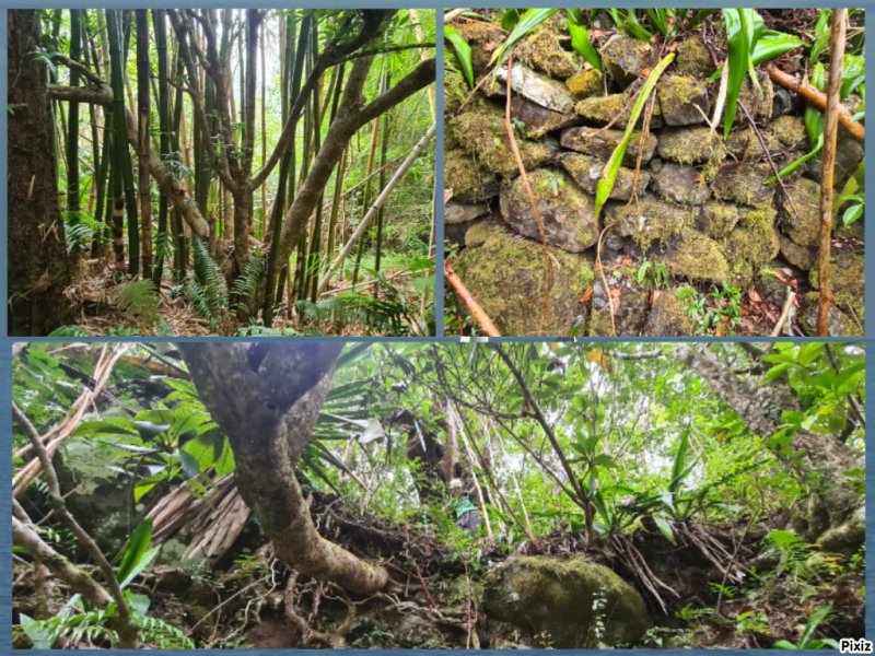 Les photos aériennes des années 1960 font clairement ressortir que le plateau était défriché et cultivé. On y distingue assez bien les cases servant sans doute d'habitation. La photo satellite des années 2020 montre beaucoup de verdure et les trois grosses touffes de bambous qui sont proches de la trace proposée ici. On se devait d'aimer la solitude pour vivre esseulé si loin de la "civilisation" de l'époque dont les images montrent quelques cases à Mare à Vieille Place. Il fallait plusieurs heures de marche pour atteindre le village, venir s'y ravitailler et vendre les produits de la récolte portés à dos d'homme.