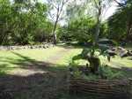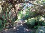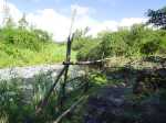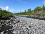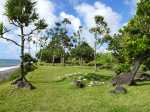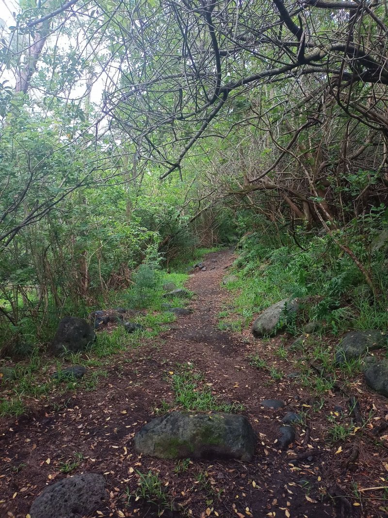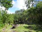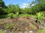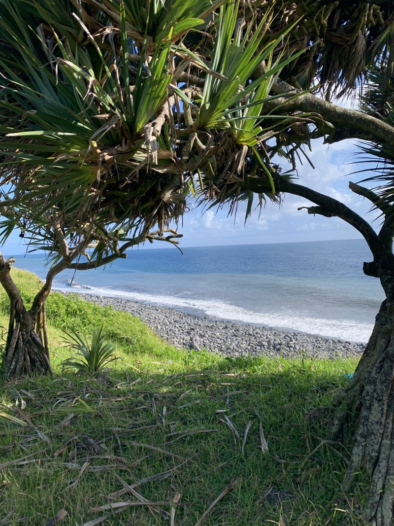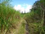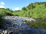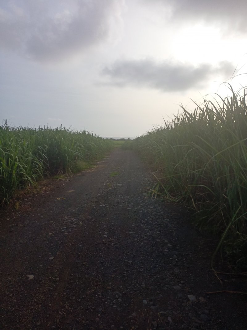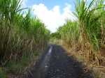La randonnée débute au croisement du Chemin Agenor, du Chemin Grand Canal et de la Route Coloniale. Ce dernier longe la plage de galets au plus près, sec et poussiéreux une bonne partie de l'année et couvert de grandes flaques boueuses après la pluie (Photo 1). Si c'est le cas, il est très agréable de marcher sur la pelouse toujours bien entretenue ou sous les pandanus qui peuvent créer une ombre agréable (Photo 2). On y retrouve d'ailleurs des traces d'anciens sentiers ou de passages fréquents. Les pandanus (vacoas à La Réunion, Bakouas aux Antilles) croulent parfois sous le poids des fruits qui sont encore consommés dans quelques endroits tropicaux de la planète (Photo 3). La piste s'éloigne doucement de l'océan ; choisir de marcher près du bord ou sur la piste. On pénètre plus loin dans les champs de canne à sucre. Le Chemin Colonial y est aussi large que précédemment (Photo 4). De juillet à décembre, une fois la canne partie à l'usine de Bois Rouge, les panoramas sont plus nombreux, tant sur l'océan que sur la montagne (Photo 5). Après les cannes, ce sont de grandes pelouses abritant des kiosques de pique-nique qui occupent l'espace entre le Chemin Colonial et la mer (Photo 6). Le chemin prend fin, après 300 mètres longeant des habitations, par une fourche de deux pistes. Celle de gauche se poursuit vers Saint-Benoît. Partir sur celle de droite qui débute à angle droit (Photo 7). On se retrouve pour quatre km sur le Sentier des Berges de la Rivière du Mât qui longe le delta entre de hautes cannes fourragères (Photo 8). Très fréquenté des coureurs, marcheurs et vététistes, il est bien marqué sur un sol herbeux entretenu (Photo 9). La pente est très faible puisque c'est celle du delta qui débute à la fin de ce sentier. Les seules côtes ne dépassent pas le mètre de montée sur 20 m de long (Photo 10). Sur la gauche, on rencontre souvent un petit bras bien en eau qui rajoute le bruit de l'eau à cette agréable balade (Photo 11). Les tronçons alternent parties plates et rocheuses, berges herbues et gros pieds de poivriers (Photo 12 et 13). Plusieurs sentiers plus étroits partent sur la gauche vers la rivière qui ne s'éloigne pas encore du sentier (Photo 15). Elle est même si près parfois que des barrières sommaires protègent du plouf possible par glissade (Photo 16). Toute la zone depuis le Chemin Colonial est régulièrement entretenue et plusieurs sentiers ont été créés dans les parties déboisées les plus larges (Photo 17). On parvient à l'endroit le plus parcouru car très proche d'un parking installé à la fin du Chemin Jeanson qui mène à une aire de repos paysagère (Photo 18). De récentes plantations viennent rajouter au charme de l'endroit (Photo 19 et 20). En partant à droite au Chemin Jeanson et en traversant plus loin la D47 pour poursuivre par le Chemin Valentin, on peut raccourcir la boucle de moitié en cas de randonnée familiale. La partie finale du sentier des berges n'est plus entretenue mais les traces de pneus indiquent qu'on peut passer facilement. Les 100 premiers mètres s'effectuent dans les hautes herbes sans chercher le sentier des yeux (Photo 21). Puis le sentier, bien visible, file droit dans les sous-bois, les filaos et les fougères, toujours aussi plat et facile (Photo 22). Un peu avant la fin du sentier, repérer sur la gauche un nouveau sentier partant vers la rivière. Il faut marcher près de 100 mètres pour rejoindre le lit du bras couvert de galets (Photo 23). Les enfants apprécieront cette halte où il est possible de patauger sans danger. Le sentier se termine à un champ de canne (Photo 24). Pour suivre le circuit proposé ici et afin d'éviter des passages en propriétés privées, il est conseillé de sortir pour la première fois le GPS et de suivre la trace au plus près. En étudiant la carte, il est bien sûr possible d'emprunter d'autres rues, routes ou pistes mais non reconnues. Rejoindre le Chemin Canal Moreau en contournant d'abord un champ de canne par la piste. Ce chemin débute par une portion en terre empierrée longeant le chantier d'insertion du jardin potager solidaire de Canal Moreau (Photo 25). Il continue entre cannes et habitations avec circulation très calme. Rejoindre la D47 puis entamer la seule véritable portion de route de la boucle. Ces 500 mètres, les moins agréables, pourraient être dangereux s'il n'y avait pas sur le bord une piste cyclable éloignant de la circulation (Photo 26). Au panneau Patelin, partir à gauche, passer devant les services techniques et ateliers municipaux du Chemin Balance. Rejoindre le Chemin Zaville et le suivre jusqu'au Chemin Valentin. Toutes les rues empruntées pour cette traversée urbaine sont étroites, pas toujours goudronnées et l'on passe souvent dans des champs en friche ou de canne à sucre (Photo 27). Lorsque l'on atteint une ligne haute tension, la boucle est presque terminée. Rejoindre le Chemin Grand Canal et terminer au début de la Route Coloniale.