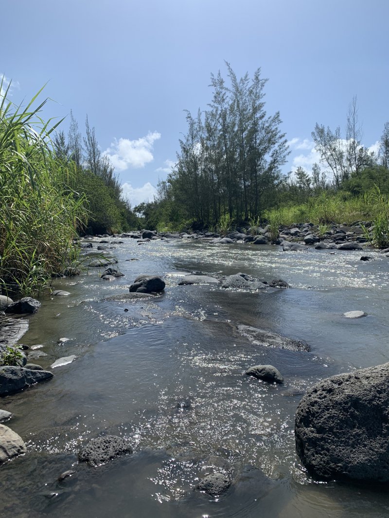 Les habitants de Saint-André et des villages environnants ont la chance d'avoir un grand circuit de marche ou de footing longeant l'océan et la Rivière du Mât. Cette fiche, destinée à encourager d'autres marcheurs à s'y rendre, propose une boucle d'une douzaine de km qui, hélas, emprunte quelques portions urbanisées pour retrouver le point de départ, à moins de faire demi-tour au Chemin Canal Moreau. La première partie longe la Route Coloniale avec poussière en saison sèche ou flaques après la pluie. Préférer la marche sur l'herbe. La seconde partie longe la Rivière du Mât sur près de 4 km pour une balade facile bercée par le bruit de l'eau. Les six derniers kilomètres se partagent rues goudronnées ou empierrées, pistes dans les champs et 500 m de route à grande circulation difficilement évitable à moins de trouver la piste salvatrice. Le bâton est conseillé lors de la traversée de zone habitées et gardées par des meutes bruyantes.