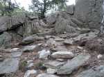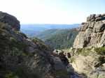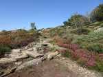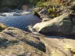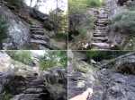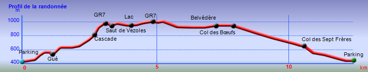 La randonnée débute au parking à la sortie du village en direction du hameau de Falgouze. Des panneaux donnent quelques indications sur la boucle (Photo 1). Se diriger vers Langlade en suivant le panneau du Chemin des Légendes (Photo 2). Ne pas hésiter à flâner dans le village ou garder une visite plus longue au retour pour profiter des ruelles étroites, des fleurs et vieilles pierres (Photo 3). En cas d'oubli du bâton en métal, en acheter un tout en bois de châtaignier à la sortie du village sans oublier de glisser le billet dans le tronc. La pente est forte jusqu'au barrage et il s'avèrera indispensable tout en créant un souvenir. Les cultures et pâturages du siècle dernier ont presque disparu et seul subsiste un chemin bordé de murets de pierres sèches qui traverse quelques plantations de châtaigniers ou de chênes (Photo 4). La montée est tout d'abord faible à l'ombre de ces vieux arbres ou le long de ces murs qui défient le temps (Photo 5). La pente s'intensifie et le sentier remonte le Ruisseau du Bureau en rive droite. La végétation empêche souvent de voir le petit torrent mais on devine déjà les premiers blocs granitiques qui dépassent la cime des arbres (Photo 6). Les pins se font plus nombreux à travers les arbustes classiques de la région régulièrement fouillés par les sangliers. Le sentier frôle plus haut une maisonnette abandonnée dominée par un gros bloc rocheux d'où l'on bénéficie de superbes vues sur toute la vallée du Bureau (Photo 7). On peut ainsi imaginer la suite du parcours en direction du Saut de Vézoles qu'on commence à distinguer tout comme le belvédère. Le sentier, bordé de murets sommaires, se met à descendre une première fois en direction du ruisseau qu'on traverse près d'une petite chute d'eau ou d'un bassin d'eau claire (Photo 8). La pente devient beaucoup plus forte dans un chaos de blocs rocheux de toutes tailles sous de gros pins (Photo 9). Certaines marches sont creusées à même les gros blocs de gneiss sans qu'on soit déjà sur le sentier des Mille Marches. Laisser à droite le Sentier des Gardes et poursuivre vers l'amont en profitant de belles vues sur la rive droite couverte de rochers (Photo 10). Profiter du plat relatif du sentier en corniche qui suit cette forte montée (Photo 11). Le parcours s'effectue sur des roches posées à plat pour une marche beaucoup plus facile. Cette agréable descente en pente très douce amène sans effort au Ruisseau qu'on traversera à nouveau près d'un coin pique-nique ombragé comportant une table-dolmen originale. Ne pas manquer les nouvelles petites chutes produisant un agréable bruit d'eau. Débute alors le sentier des Mille Marches qui se remarque très vite aux premiers escaliers faits de larges plaques granitiques très bien assemblées (Photo 12). La montée ne faiblira plus jusqu'au barrage et on arrêtera très vite de compter les marches. On passe entre de magnifiques blocs de rochers qui peuvent parfois s'escalader pour mieux profiter du paysage de la vallée. On côtoiera également de magnifiques cascades alimentant des bassins se prêtant à la baignade par beau temps (Photo 13). Plus haut, le sentier s'éloigne du ruisseau après avoir traversé près d'une très haute chute tombant en plusieurs cascades (Photo 15). Les marches sont toujours aussi nombreuses entre les blocs rocheux ou les énormes troncs de hêtres, centenaires pour certains (Photo 16). On se retrouve après un sérieux effort en haut de la précédente cascade mais qui n'est pas la dernière puisqu'on devine dans les trouées la cascade du Saut de Vezoles. La montée se termine à la petite route du barrage et il est possible de partir vers la barrage avant de poursuivre à gauche par le GR7. Tout près de la route, débute un sentier en pente raide sous les arbustes, en direction du Ruisseau du Bureau (Photo 17). Les rives granitiques sont découpées et créent de magnifiques natures mortes (Photo 18). Attention pour grimper sur les nombreux rochers qui bordent le cassé du Saut de Vezoles (Photo 19). Au lieu de remonter par le même itinéraire, traverser le ruisseau et emprunter un des nombreux sentiers remontant vers les installations du barrage en passant dans une pinède sombre et dans les bruyères (Photo 20). Partir à droite sur la route, pénétrer sous l'ombrage de la Forêt Domaniale du Somail pour un repos bien mérité à moins de filer vers le lac et de profiter de ses berges si le niveau de l'eau est bas (Photo 21). Le tour du lac ne faisant que trois kilomètres, à chacun de voir si la boucle présente de l'intérêt. Sinon, traverser par la route du barrage et rejoindre le point haut des Mille Marches pour entamer la longue descente débutant dans les chaos rocheux noyés de bruyère (Photo 22). Après l'originalité et l'effort des Mille Marches, la balade dans les bruyères est un pur plaisir de randonneur. Les arbres sont clairsemés, encombrés de rochers et le sol est totalement recouvert de bruyères (Photo 23). La pente est faible, le sentier large et très familial dans ces landes d'altitude frôlant les mille mètres (Photo 24). La légère descente se rapproche d'un belvédère aménagé offrant de magnifiques panoramas sur le Bureau et la région vallonnée (Photo 25). On parvient plus bas à une large piste forestière bordée d'un côté par des sapins et de l'autre par les hêtres (Photo 27). La progression devient très rapide jusqu'au Col des Bœufs. Au croisement de plusieurs pistes, partir à gauche et rejoindre Langlade par une longue descente sur plusieurs chemins ombragés par tous les arbres rencontrés jusque là (Photo 28). Au Col des Sept Frères, reprendre à gauche pour finir, toujours aussi facilement sous les futaies, la jonction avec le village que l'on rejoint au parking de départ.