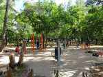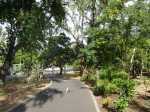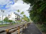 La sortie a été reconnue à partir du grand parking proche de l'étang mais il est tout à fait envisageable de rouler à partir du parking proche du CRESP (Photo 21). Débuter tout simplement par la Rue de la Croix en rejoignant la piste cyclable très facile à repérer (Photo 1). On parvient très vite au rond-point marquant le début de l'Avenue du Front de Mer. Son centre est occupé par un bois noir des bas, très impressionnant en période de floraison. Il dépasse à peine les 20 m de hauteur mais il est plus large que haut et possède un tronc énorme (Photo 2). Il apparaîtra un jour dans la liste des arbres remarquables de l'Île. Le circuit longe l'école Louise Siarane dont la clôture affiche quelques beaux paysages de La Réunion (Photo 4). La piste est totalement rectiligne, excepté quelques virages pour contourner des parkings aménagés le long de l'avenue (Photo 5). Elle frôle plus loin une aire dédiée aux sportifs désirant compléter le parcours par des exercices plus violents (Photo 8). On peut d'ailleurs les voir trottiner par moments dans le sous-bois qui longe la piste (Photo 9). Quelques portions ombragées sous les tamarins d'Inde favorisent des arrêts pour souffler (Photo 12). La parcours n'est guère fleuri à l’exception de quelques jardins de l'autre côté de l'avenue (Photo 13). A la fin officielle du circuit sportif, la piste cyclable se prolonge vers la médiathèque. Franchir un pont enjambant une petite ravine (Photo 17). On ne tarde pas à s'approcher de la médiathèque facilement accessible en prenant garde à la circulation (Photo 18). On s'approche de plus en plus de la ville de Saint-Paul et les immeubles se multiplient en bordure d'avenue (Photo 19). La Rue Julius et Ary Lebond, de l'autre côté, marque la fin proche de la sortie. Après une belle case de style créole, se préparer à faire demi-tour (Photo 20). Le retour, tout aussi facile, s'effectue par le même itinéraire.