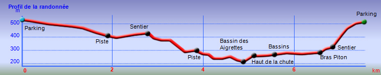 Se rendre à Saint-André puis à la Rivière du Mât avant de prendre la route de Bellevue les Hauts - Stationner entre la piste de départ et celle d'arrivée (ici, celle de fin de boucle) - Rejoindre le sentier de descente au Bras des Lianes - Descendre jusqu'au parcours des cascades du Bras des Lianes et marcher vers le Bassin des Aigrettes - Remonter vers le haut de la cascade des Aigrettes puis poursuivre longuement le long du Bras des Lianes - Chercher le sentier de secours des canyonistes en face de la haute cascade - Remonter le sentier sportif jusqu'à la ravine profonde qui le coupe - Longer la petite ravine, poursuivre sur l'ancienne piste sur des traces de passages jusqu'au véhicule.