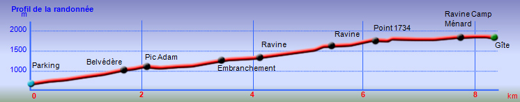 Le retour s'effectue par le sentier revenant au Pic Adam ou toute autre direction le lendemain après avoir passé la nuit au gîte (conseillé).