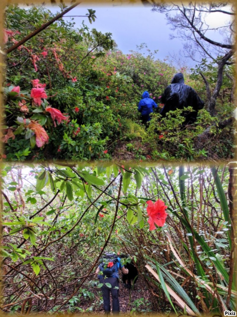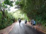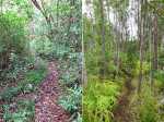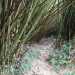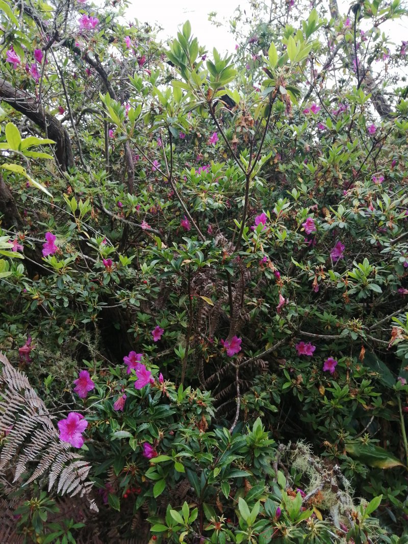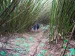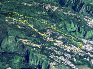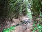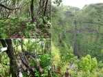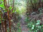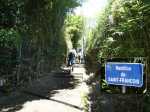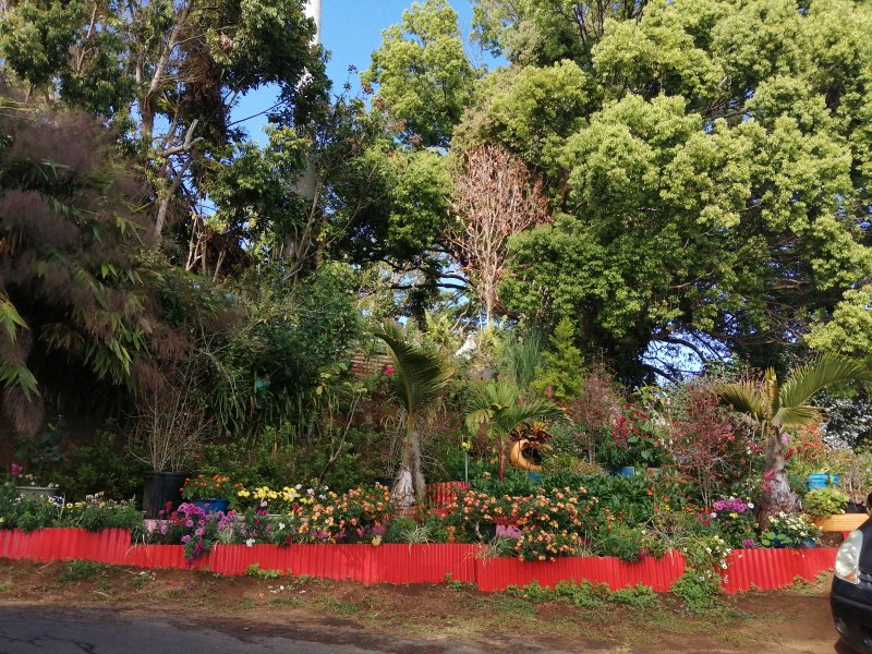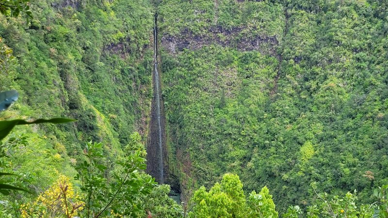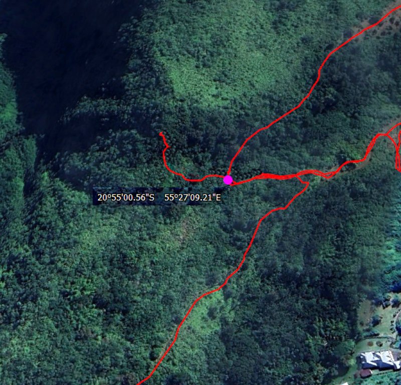 La randonnée débute ici à l'église de Saint-François proposant quelques emplacements de stationnement. Commencer par la rampe bétonnée qui donne une idée de la pente jusqu'au premier sentier. Tourner à droite sur le Chemin Mazérieux et poursuivre entre cases fleuries et nombreuses touffes de bambous (Photo 1). On peut rejoindre le Chemin de l'Evêché par les lacets de la route ou emprunter à droite l'étroit raccourci entre les habitations (Photo 2). Attention : après quelques mètres, on se retrouve face à un portail. La ruelle contourne la propriété avant de terminer au Chemin de l'Evêché. Bifurquer cette fois à gauche puis entamer la très longue montée du Chemin Macassis qui alterne longues portions goudronnées et bétonnées avec des lacets qu'on cesse très vite de compter. Les allergiques à la route qui auront résisté à l'envie de monter en bus apprécieront sans doute le calme de la montée sans véhicules, les cases espacées, les chiens bruyants mais peu dangereux et les touffes de bambous (Photo 3). Les lacets sont serrés et ne comportent pas de raccourcis. Une halte s'impose dans la montée pour apprécier les dizaines de variétés de plantes fleuries à proximité d'une case (Photo 4). A la fin de la trentaine de virages et les muscles bien chauffés on parvient aux dernières habitations de Macassis. Un tronçon du sentier Laverdure débute sur la droite entre bambous et filaos (Photo 5). Après une petite plongée dans l'obscurité des bambous, il faut traverser à gué la petite Ravine Bois d'Oiseaux (Photo 6). Le sentier Laverdure se poursuit dans les bambous, les goyaviers avant de pénétrer dans une forêt de cryptomerias en petite forme (Photo 7). Les marches en bois alternent avec les portions plates et terreuses du sentier. Ne pas manquer deux bifurcations groupées pour filer en direction du Piton du Butor. La première, à l'altitude de 1000 m, en prenant à gauche à angle droit afin d'entamer une descente sur des marches (Photo 8). La deuxième, 10 mètres plus loin, après avoir repéré le discret sentier partant également en angle droit mais à droite. On ne quitte pas pour autant les bambous et les goyaviers (Photo 9). Le sentier n'a rien à voir avec le précédent. Il est étroit, très encombré de végétation sans pour autant se perdre de vue. Un premier embranchement se situe au début d'une importante surface couverte d'azalées. Prendre à gauche pour pénétrer sous leur couvert (Photo 10). C'est tout à coup un véritable enchantement de progresser dans les fleurs de toutes couleurs, même par temps pluvieux (Photo 11). Il arrive même d'être obligé de se baisser pour passer sous ces azalées à l'origine inconnue. Elles ne disparaissent pas totalement mais les touffes de bambous deviennent de plus en plus présentes. Le sentier, toujours aussi étroit est impossible à perdre de vue au milieu des petits goyaviers et longoses (Photo 13). Le cheminement s'effectue en ligne de crête entre la Ravine du Butor et celle de Boucan Launay. Quelques énormes filaos ayant résisté aux cyclones ponctuent cette ligne de crête pour de respectueux hommages (Photo 14). Il faut traverser ensuite une zone totalement envahie de goyaviers avant de parvenir à une autre où fougères et branles occupent encore les lieux. On est au niveau du Piton du Butor que rien de particulier ne distingue des collines environnantes. On profite de la végétation basse pour observer les panoramas sur le Pic Adam d'un côté (Photo 15) et les villes côtières du côté de Sainte-Suzanne (Photo 17). Après les azalées, c'est au tour des iris nains de border le sentier devenu plus large (Photo 16). Le sentier envahi de végétation, la partie la plus délicate de cette boucle, se termine par une très haute marche d'un mètre au Chemin de la Convalescence avec à nouveau quelques lacets serrés où l'on trouve cependant un raccourci pentu (Photo 18). Cette descente au calme finit à la Convalescence. Prendre à droite et marcher un peu sur la RD43. Passer un lacet et ne pas manquer le nouveau sentier dans le deuxième lacet près de deux poteaux électriques. Ce nouveau sentier n'a rien à voir avec le précédent. Il est large et assez fréquenté. On y retrouve quelques beaux panoramas sur le chef-lieu (Photo 19). La trace, assez large et de bonne qualité permet de marcher sans effort et sans chercher son chemin à travers les fougères (Photo 20). On retrouve bien évidemment les incontournables goyaviers mais aussi des bois de couleurs et des camphriers entourés d'iris nains (Photo 21). Cette descente sans encombre se termine à une piste en terre près de la carcasse rouillée d'un très vieux camion Berliet. Il est fortement conseillé de partir à gauche et de marcher jusqu'à la petite ravine, affluent de la Ravine de la Glacière, pour dégoter le sentier menant au point de vue sur la Cascade du Butor. Il se trouve assez facilement à gauche, quelques mètres après la ravine. Le passage est étroit car peu pratiqué mais la trace reste visible malgré quelques arbres tombés au sol. Moins de 100 m plus haut, la trace s'arrête à un très rustique observatoire construit avec de vieilles branches vermoulues. Depuis ce belvédère original on profite de l'ensemble de la cascade de la Ravine du Butor, déjà visitée par le bas (Photo 22). Reprendre le chemin inverse qui longe la ravine (Photo 23). Rejoindre la carcasse du camion puis entamer la dernière descente en empruntant la piste ou le sentier qui lui est parallèle (Photo 24). Le large sentier effectue quelques lacets, traverse une zone de terres rouges, franchit une ravine et se poursuit sans aucune difficulté (Photo 25). Il traverse plus bas une zone de pique-nique vieillissante et une aire de jeux presque neuve avant de se rapprocher du Chemin de la Glacière. Prendre à droite puis marcher sur le Chemin de Comète jusqu'à la Route de Saint-François (Photo 26). Prendre à droit