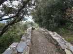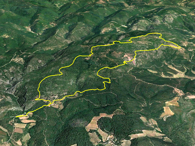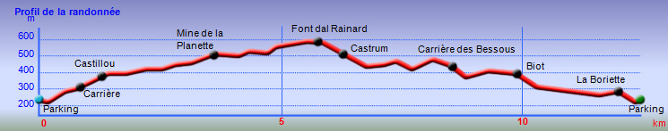 La randonnée débute au plus près de la chapelle de Notre-Dame du Cros où une vingtaine d'emplacements permettent de stationner. En cas d'affluence, un grand parking est situé 200 m avant d'arriver. La chapelle est située dans un magnifique écrin de verdure au pied des falaises d'escalade entourant le Ruisseau de Cros (Photo 1). Contourner l'édifice et franchir le gué du petit cours d'eau avant de poursuivre sur une piste herbeuse et empierrée. Rapidement, le chemin part à droite en direction de Sicard. Le délaisser pour emprunter le sentier étroit, un peu raide, remontant vers les maisons isolées de la Boriette (Photo 2). On retrouve la piste et une bifurcation. Partir à gauche. La boucle prendra fin à la piste de droite. Le chemin caillouteux monte à travers des vestiges d'extraction du marbre exploité pendant quelques siècles. On en rencontrera une bonne demi-douzaine tout au long de la boucle. De gros blocs demeurent sur le côté et ne seront plus exploités. Les vues sont superbes en direction du Minervois et des Pyrénées (Photo 3). Si la première marbrière est banale, la seconde vaut qu'on y pénètre en prenant garde aux recommandations affichées à l'entrée. Cette première visite permet de remarquer de magnifiques falaises aux parois lisses teintées de superbes couleurs rouges par temps de pluie (Photo 4). Poursuivre jusqu'à la traversée d'empilements de pierres ayant l'aspect de murailles effondrées. On est situé à l'emplacement de l'Enceinte Préhistorique du Cros dont les origines datant de l'âge du bronze sont expliquées sur le panneau pédagogique (Photo 5). Continuer après avoir recherché quelques vestiges sous les pins et chênes verts. La piste naturellement empierrée comporte souvent un sol constitué de marbres colorés. La marche est facile sur la faible pente dans une végétation touffue (Photo 6). Elle devient de plus en plus carrossable mais il est conseillé de la quitter pour partir vers la droite à l'altitude de 400 m sur un agréable sentier dans les chênes verts (Photo 7). On parvient ainsi à la marbrière du Castillou qui se présente sous la forme d'un grand trou dans les falaises. Le sentier en fait le tour, passe près d'une citerne à ciel ouvert destinée à recueillir et conserver l'eau nécessaire à la taille du marbre (Photo 8). Reprendre la piste et monter vers le nord sans aucune difficulté en empruntant la Grande Traversée de l'Hérault. Les pistes et chemins empierrés se succèdent à travers garrigues, pinèdes ou chênaies (Photo 9). Partir à gauche à la Matte et marcher jusqu'au croisement du petit sentier empierré menant à la Planette. La carrière encaissée et l'ancienne mine sont situées en bordure de rempart dominant le Ruisseau du Cros pour de beaux paysages verdoyants (Photo 10). Visiter dans la zone la cabane en pierre pour découvrir des niches qui abritaient sans doute des ruches (Photo 11). Poursuivre vers Font dal Rainard et effectuer ou non le court détour pour s'approcher d'un petit dolmen ayant pu abriter une sépulture humaine (Photo 12). On rejoint facilement Font dal Rainard en prenant garde aux tirs des chasseurs de sangliers les dimanches. On quitte alors les pistes pour emprunter les premiers sentiers descendant en direction de Ventajou. Un autre écart est possible à 550 m pour aller à la rencontre d'un tout petit menhir sur le bord du sentier (Photo 13). Continuer sur les beaux sentiers offrant de plus en plus de panoramas vers le Minervois (Photo 14). On parvient rapidement à un piton rocheux de 517 m dépassant de la végétation (Photo 15). Un sentier discret débute sous un cèdre pour atteindre le sommet où siégeait le Castrum de Ventejou, un castelet dont il ne reste que de rares vestiges. En revanche, les panoramas y sont plus larges qu'ailleurs et moins cachés par la végétation. La descente se poursuit à flanc de rempart dominant la propriété de Bel Soleil (Photo 16). Le sentier devient de plus en plus élaboré, signe qu'il était très utilisé au siècle dernier (Photo 17). Les oliviers et quelques arbres fruitiers font leur apparition, confirmant l'exploitation récente du lieu. On arrive aux ruines de Ventajou, un hameau abandonné, sommairement remis en état, lieu idéal pour la pause de mi-parcours. Avis aux randonneurs prompts à dégainer le papier toilette plus vite que leur ombre. Avant de se précipiter dans la première étable ou habitation rencontrée, chercher les toilettes aménagées aux points bas des ruines, dans un local reconnaissable au rideau fermant la porte. Même cimentées par endroits, les ruines n'en demeurent pas moins dangereuses mais sont fort agréables pour couper du vent durant la pause (Photo 18). Profiter de la table d'orientation avant de reprendre la boucle. Entamer alors la fin de la descente sur un sentier en corniche souvent rocheux, effectuant quelques détours pour le franchissement de petits ruisseaux (Photo 19). Quelques raidillons courts peuvent un peu couper les jambes. On traverse même de larges plaques calcaires pouvant être glissantes par temps humide (Photo 20). Se préparer à une nouvelle halte après avoir descendu une pente protégée de quelques câbles se terminant au moulin des Bessous. La carrière d'extraction est la plus intéressante de la journée. Ne pas hésiter à y pénétrer pour profiter des cavités, grottes, falaises sculptées ou réserve d'eau (Photo 21). La couleur du marbre, les techniques d'extraction et des portions polies permettent de se plonger au cœur de cette exploitation jadis florissante (Photo 22). Délaisser plus bas la large piste menant à Brama pour continuer vers le moulin de Biot qu'on atteint facilement. Cette nouvelle ruine en cours de restauration est le seul moulin à vent français destiné à la coupe du marbre (Photo 23). Poursuivre par un sentier bordé de murets de pierres plates puis rejoindre les dernières pistes ombragées de la boucle (Photo 24)