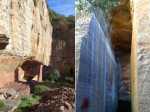 Si le chrono et les jambes le permettent encore, ne pas manquer la visite de la grotte du Cubitus après le gué sur le Rec des Balmes. Emprunter le petit sentier au panneau pédagogique qui résume l'histoire de cette grotte où furent retrouvés des restes humains et grimper en se griffant parfois jusqu'à l'entrée de la grotte (Photo 25). Avec une lampe, il est possible de ramper un peu à la recherche de vestiges géologiques puisque les restes préhistoriques ont été prélevés (Photo 26). La visite est courte, originale, pour changer un peu des carrières de marbre.