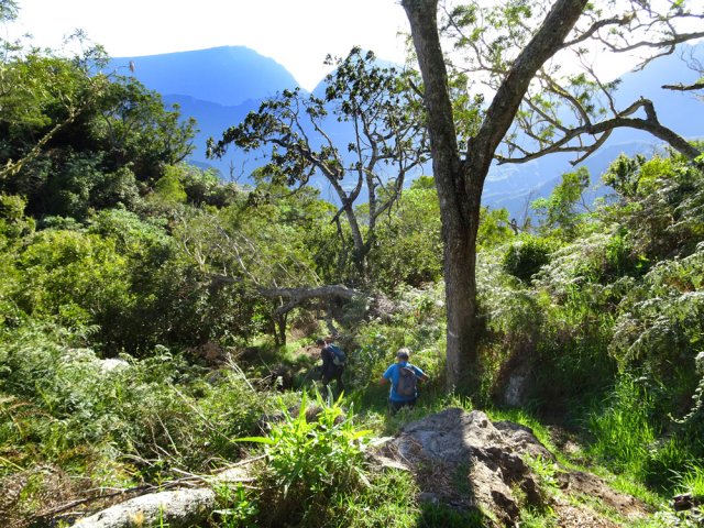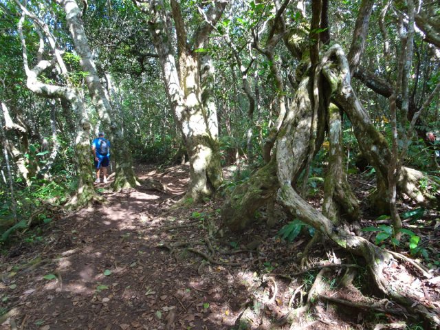 Dernière portion dans la forêt dense, bien suivre la trace et pousser les branchages, ça passe sans machette !