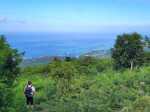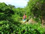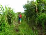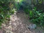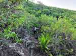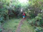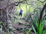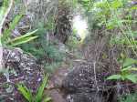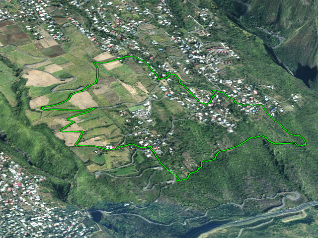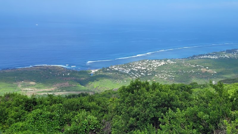 La randonnée débute au Chemin d'Armanet, dans le premier lacet rencontré depuis le dernier croisement de routes. Emprunter tout d'abord une large piste où circulent les véhicules des rares habitants de la zone (Photo 1). Très vite, après la dernière bifurcation, le chemin se transforme en sentier agréable (Photo 2). La végétation n'a rien d'extraordinaire mais il est plaisant de marcher sans effort dans la verdure (Photo 3). Les panoramas sur l'océan du côté de La Saline et de l'Ermitage sont fréquents (Photo 4). Les roches envahies de faux poivriers et de chocas sont de plus en plus nombreuses sans pour autant ralentir la marche (Photo 5). Cependant, quelques tronçons assez courts comportent de hautes marches dues à ces roches empilées (Photo 6). On retrouve très vite des zones de verdure où les traces et bouses montrent que les bestiaux aiment venir y brouter (Photo 7). Le sentier traverse la Ravine de la Souris Chaude près d'un vertigineux cassé sans doute impressionnant lorsque coule la cascade (Photo 8). On longe d'ailleurs plus loin la très profonde vallée de cette ravine très souvent à sec (Photo 9). Le sentier, toujours aussi rocheux, semble parcouru par les joggeurs du coin (Photo 10). On parvient à des murs de soutènement destinés à retenir la terre pour de très anciennes cultures désormais recouvertes de fougères, chocas et poivriers (Photo 11). Au lieu de remonter vers le village, le sentier entame une descente vers la droite (Photo 12). Le paysage change peu et la marche est toujours aussi agréable (Photo 13). Après cette courte descente, il remonte assez rapidement vers Bois de Nèfles en devenant plus étroit mais encore facile à suivre (Photo 14). A l'approche des premières habitations, quelques arbres fruitiers et cultures de manioc ou de maïs remplacent le maquis que l'on vient de traverser (Photo 15). Emprunter la petite rue qui remonte dans le village (Photo 16). En partant sur la gauche, on parvient à un escalier, début du raccourci du Sentier de la Halte entre cases et jardins évitant un long détour du Chemin Blanchard (Photo 17). Une fois le Chemin Blanchard atteint, en emprunter un tronçon jusqu'au croisement suivant. Parti à droite sur la Rue des Vavangues qui débute en forte montée et se poursuit plus loin par une belle allée bétonnée passant entre fourrés et habitations (Photo 18). Partir à gauche sur le Chemin Desbassyns jusqu'à une petite ravine. Entamer la montée par l'escalier du Sentier des Liserons qui effectue un virage vers la gauche et se poursuit à nouveau par une allée bétonnée puis en ruelle jusqu'à la Rue Gabriel Mareuil (Photo 19). Poursuivre à nouveau vers la gauche, franchir la Ravine de la Souris Chaude et rejoindre un croisement proche d'un château d'eau d'où l'on profite de larges panoramas sur la mer (Photo 20). C'en est terminé de la courte partie urbaine de la boucle en quittant Bois de Nèfles par le Chemin Mareuil qui rejoint la RD14 entre les champs de canne (Photo 21). Il n'y a que 400 m à effectuer sur cette départementale mais la circulation y est assez importante. Prendre donc garde pour rejoindre la première piste à droite après un lacet et entamer la descente sur le sol herbeux (Photo 22). La pente est faible et la marche facile (Photo 23). Rejoindre pour la troisième fois la RD14 et ne pas manquer le départ du dernier sentier entre deux routes en cul de sac menant à des habitations (Photo 25). Le sentier semble envahi par les lianes mais le passage se fait sans encombre (Photo 26). Traverser une ruelle puis poursuivre sur une trace alternant fortes pentes et zones plus plates (Photo 27). On retrouve le véhicule stationné à la fin du sentier, en état de marche, et non comme bien d'autres dans les talus bordant la piste (Photo 28).