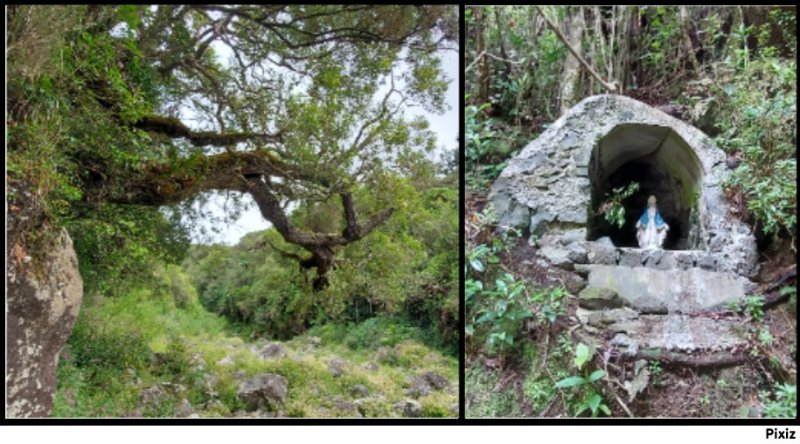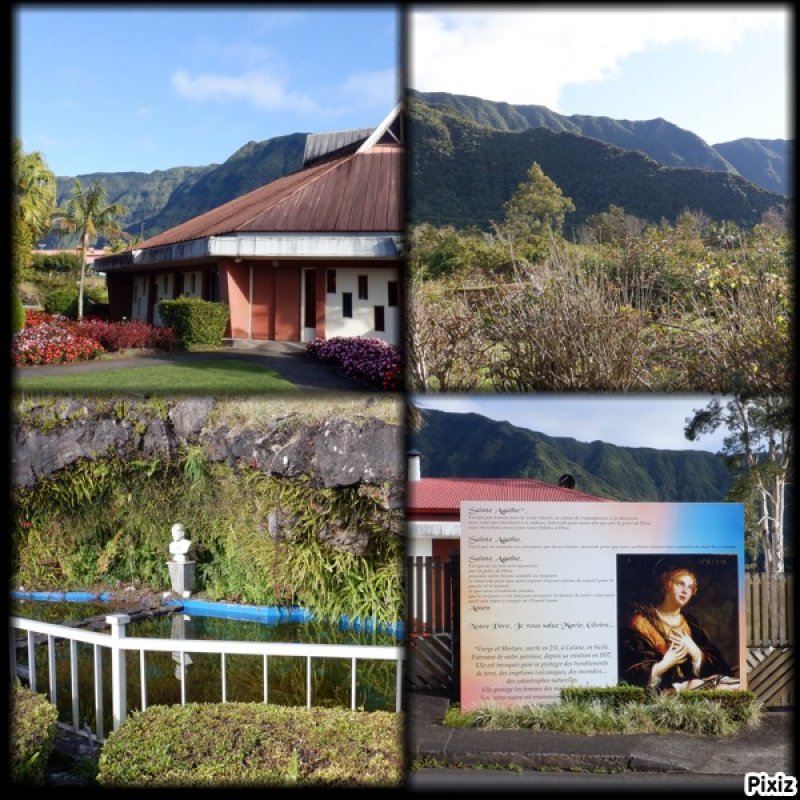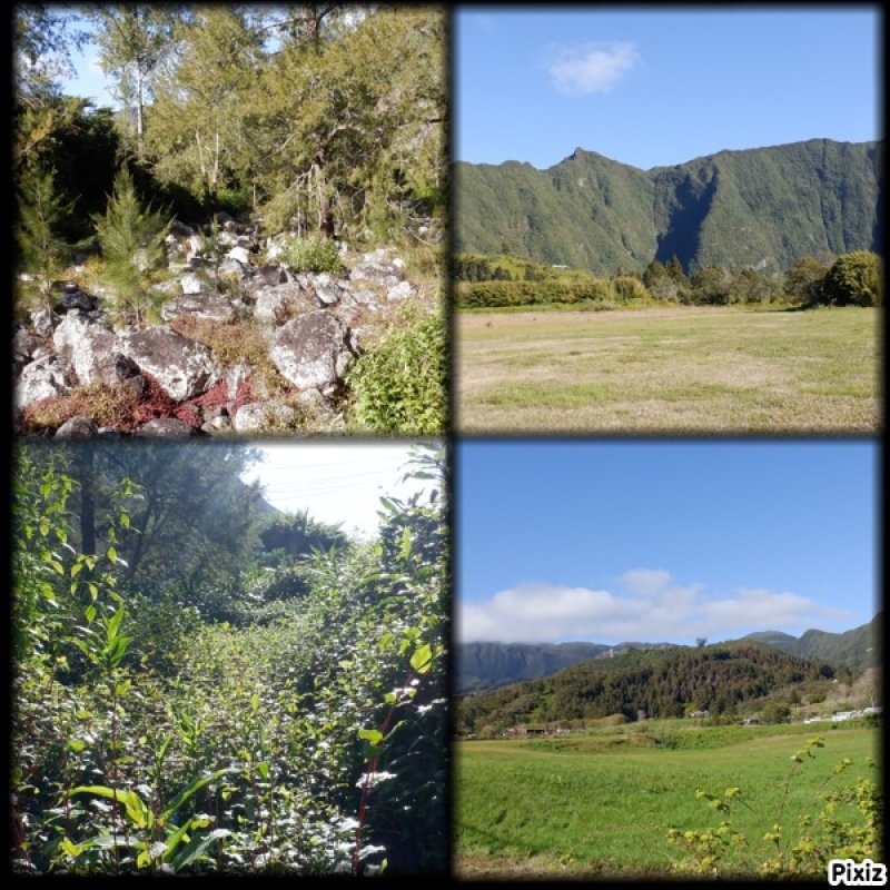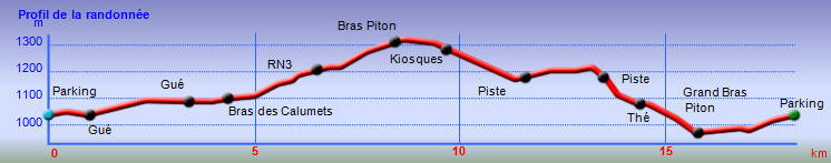 La randonnée débute ici derrière la mairie où de nombreux parkings permettent de laisser un véhicule à l'ombre des platanes. Rejoindre la Rue du Stade en visitant les jardins fleuris entourant la mairie et l'église composée de deux bâtiments distincts (Photo 1). On rejoint rapidement le stade et l'aire de pique-nique du Bassin Cadet où de courtes randonnées sont possibles. Franchir le radier de la Ravine Sèche et poursuivre en rencontrant de moins en moins d'habitations (Photo 2). Tourner à gauche au premier croisement puis continuer en longeant des prairies et en appréciant les panoramas sur les remparts de la Grande Montée (Photo 3). On est déjà en pleine nature avec très peu de circulation pour profiter sereinement de tous ces paysages. Plusieurs producteurs de goyaviers ouvrent leurs champs, à la saison, pour les cueilleurs munis de leur seau. Les arbustes, taillés et bas pour mieux se saisir des fruits n'ont rien à voir avec ceux rencontrés plus tard lors de cette randonnée (Photo 4). Plus loin, emprunter à droite la Rue des Remparts surtout marquée par les platanes qui jaunissent en juin et laissent au sol des couches de feuilles (Photo 5). La rue longe la Ravine Sèche qu'on devine par endroits. Pour revenir vers la ville et traverser le petit cours d'eau à sec, poursuivre et ne pas manquer le départ du sentier qui descend de manière abrupte vers les galets encombrant le lit. Traverser en visant la suite du sentier vers la gauche (Photo 6). Suivre, le Chemin Fifine bordé de bambous, une centaine de mètres de la D55 puis poursuivre tout droit sur la Rue Luc Boyer bordé de quelques habitations et champs en profitant cette fois des points de vue sur le Piton des Songes (Photo 7). Franchir la Ravine du Bras des Calumets et bifurquer à droite sur une agréable piste bordée de prairies (Photo 8). Le chemin n'est pas goudronné mais on y rencontre quelques cases fleuries (Photo 9). La pente s'intensifie au moment d'emprunter quelques lacets bordés de grosses touffes de vigne marronne (Photo 10). Le chemin, de plus en plus ombragé sous les cryptomerias finit à la RN3, près du parking du chemin de croix du Piton des Songes. On retrouve le goudron de la Rue Evan qui ne comporte pas de trottoirs, mais la circulation y est très faible. Comme depuis le départ, on marche surtout en regardant les jardins fleuris, les belles cases créoles et les contreforts du Piton des Cabris qu'on devine à l'horizon (Photo 11). Une série de lacets permet de s'élever un peu pour profiter de plus en plus de panoramas vers le Piton des Neiges ou le Pic des Sables (Photo 12). La montée sera constante jusqu'aux habitations de Bras Piton. On repère les cryptomerias entourant le Piton Doré cachant le départ vers le Piton Textor qu'on aperçoit à l'horizon (Photo 13). On arrive d'ailleurs rapidement à la zone de repos sous les conifères et profiter ainsi des tables de pique-nique pour la première halte. La descente débute par la Rue Bernard Ginet bordée par endroits de bosquets de thé. Les arbustes cultivés au siècle dernier et abandonnés constituent désormais de très hautes haies (Photo 14). Pousser jusqu'au pont sur la Ravine du Bras Piton pour y découvrir bassins et marmites mais poursuivre en obliquant à droite sur la Rue Viella qui mène, toujours dans la verdure, vers le départ du circuit vers le Piton des Cabris (Photo 15). Avant de pénétrer dans la forêt de cryptomerias, profiter des panoramas sur une grande partie des remparts entourant la Plaine des Palmistes (Photo 16). La piste descend légèrement pour franchir le Grand Bras Piton puis pénètre sous les grands conifères. La marche facile est ombragée la plupart du temps. La large piste est utilisée par les automobilistes qui stationnent en bout de piste (Photo 17). Laisser le sentier de droite vers le Piton des Cabris. Après le parking, poursuivre sur un escalier pénétrant dans le sous-bois et entamer la montée sur les racines en lisière de forêt (Photo 18). Après une courte descente pour franchir une passerelle sur la Ravine Fortuné, le sentier se met à plonger si fortement sur les racines que les mains s'avèrent utiles pour ralentir (Photo 19). On suit la Ravine Fortuné assez difficile d'accès puis on traverse un affluent humide dans les mousses (Photo 20). Très vite, le sentier débouche sur la piste venant du nord et une descente en plusieurs lacets débute dans la verdure et le silence (Photo 21). Un premier sentier débute sur la gauche. Il mène à une aire cultivée jadis pour y récolter le thé. La zone, désormais recouverte de végétation demandera beaucoup de travail pour la remettre en état (Photo 22). Plus bas, le sentier est à éviter car il se termine à une vingtaine de ruches très fréquentées par des milliers d'abeilles. La fin de la descente par la piste est une balade entre bois de chapelet et hectares de califons (Strobilanthes hamiltonianum) aux nombreuses fleurs roses (Photo 2). Cette grande fleur buissonnante a envahi toute la zone et on en rencontre également dans le village. On s'approche du Morne de Saint-François qui domine une centaine de mètres plus haut (Photo 24). A la barrière, juste en face du rein du morne, obliquer sur le sentier ligne 500 qui débute par de superbes kiosques de pique-nique (Photo 25). Le parcours a été aménagé par l'association Plaisir Rando 2P qui l'entretient régulièrement. Il traverse également quelques anciennes plantations de thé où la marche s'effectue par moments sur un tapis de fleurs blanches, parfois recouvertes de feuilles de platanes (Photo 26). Le sentier traverse plus bas le Grand Bras Piton à partir d'un grand bois de rempart abritant une Vierge (Photo 27). Remonter pour traverser à nouveau une ravine profonde avant de parvenir à la fin du sentier. Remonter la totalité de la Rue Raphaël Babet, traverser la RN, emprunter la Ruelle Cascade Biberon jusqu'à la Rue des Nénuphars. Le der