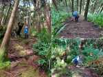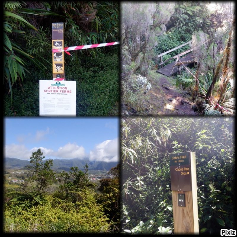 On a commencé à l'envers de la fiche pour avoir la forêt en premier. Le sentier Ligne des 500 est bien encombré entre la rue Babet et les kiosques (herbes hautes et branchages). On est trempé en 1 minute ! La montée sous les cryptomerias disparaît parfois sous les bouts de branches déchiquetés par Belal. Cette partie raide est préférable en montée après les pluies car les racines sont terriblement glissantes. Le reste est OK. On a raccourci pour cause de forte pluie, au niveau du piton des Songes le chemin Sacré cœur pas trop entretenu permet d'éviter les lacets sans trottoir.