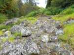 La randonnée est agréable mais par temps humide et après une nuit pluvieuse j’aurais peut-être dû faire la boucle dans l’autre sens. En effet la descente au bord de la forêt dans la ravine est vertigineuse: on glisse pas mal sur les racines ou les pierres, sans compter la boue