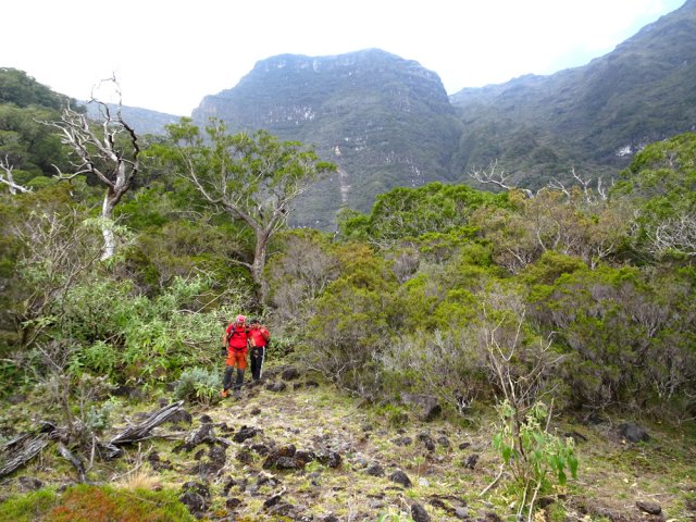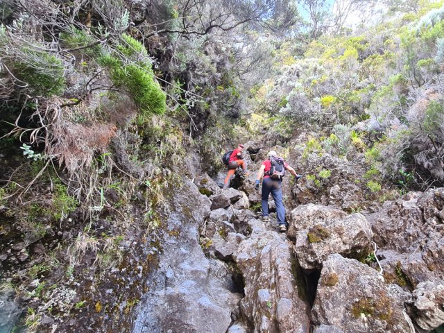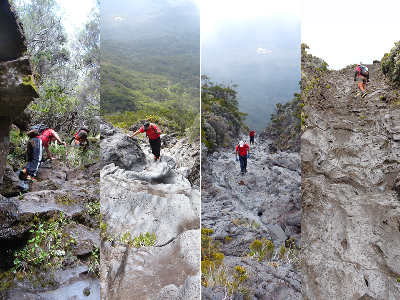 La montée de la ravine Saucisson est rude physiquement mais ne présente jamais de passage véritablement inquiétant.