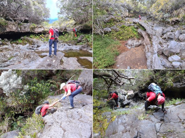 Le début de la remontée en direction de la RF du gîte est relativement simple. Souvent ombragée et rarement très pentue, une fois que vous avez bifurqué dans la ravine Saucisson, l'ambiance change rapidement. Une pente prononcée et l'escalade de petits passages cassés caractérisent la ravine. Les amateurs de forte pente apprécieront sans doute cet aspect. On ressent un soulagement bien mérité en atteignant la RF.