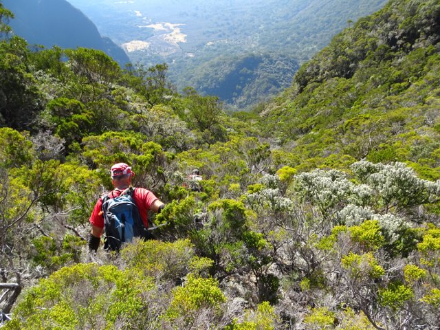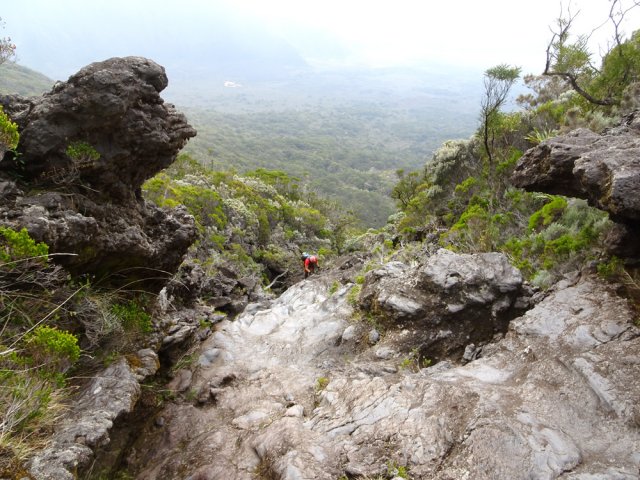 Incroyable descente que je pensais impossible à faire, elle est la réponse parfaite que fait le Rempart des Basaltes au Rempart des Orangers au Maïdo.