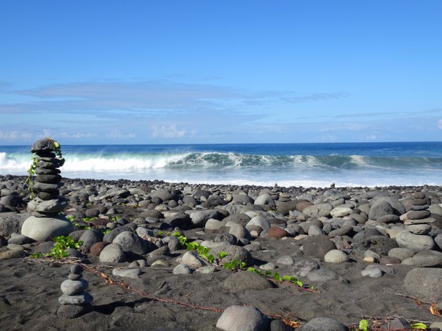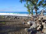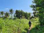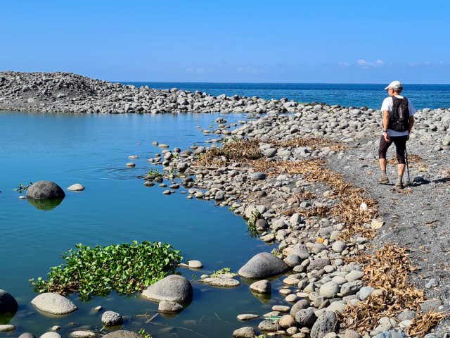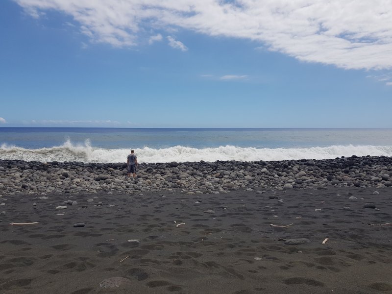 Le début de la randonnée se fait facilement malgré quelques arbres à terre depuis le cyclone mais rien d’infranchissables. Par contre grosse déception en arrivant vers la mer a l’endroit où il faut traverser les galets. L’eau est trop haute, les vagues trop fortes, c’est trop dangereux. Obligé de faire demi tour au trois quart de la rando. Au total j’ai mis 2h et fait 8,5 km. On n’en peut pas appeler ça une boucle