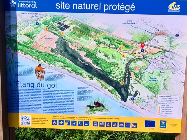 Balade agréable dans son ensemble par contre après la passerelle, ne pas aller tout droit c'est infranchissable à cause de l'eau. Il serait mieux de prendre à droite et suivez le sentier, ensuite vous vous trouvez sur un air de pic-nic, suivez la 4 voie qui vous ramène sur un autre sentier, et vous permet d'effectuer le tour en longeant la mer et l'étang. Vous arriverez au parking de l'étang Gol si la mer n'est pas haute. Continuez avec l'itinéraire de l' application en passant 2 ti passerelles et un ti passage d'eau facile à passer attention ça glisse un peu. 6,90 kms