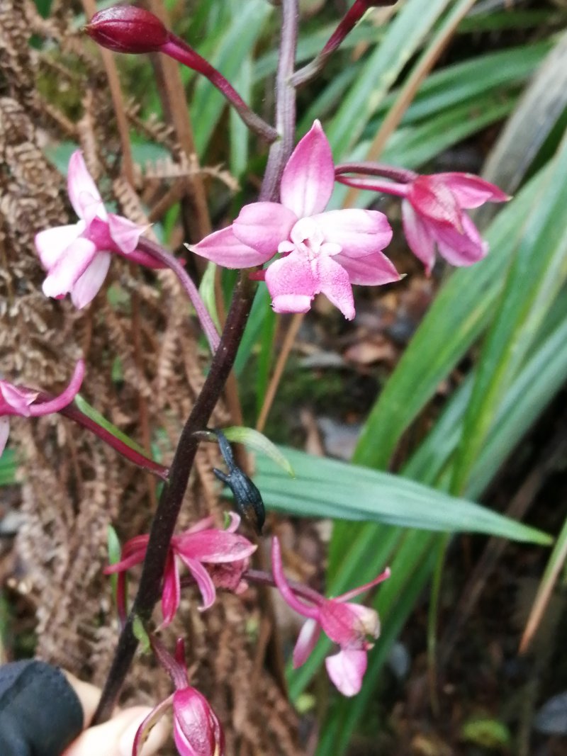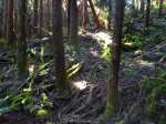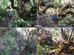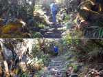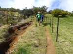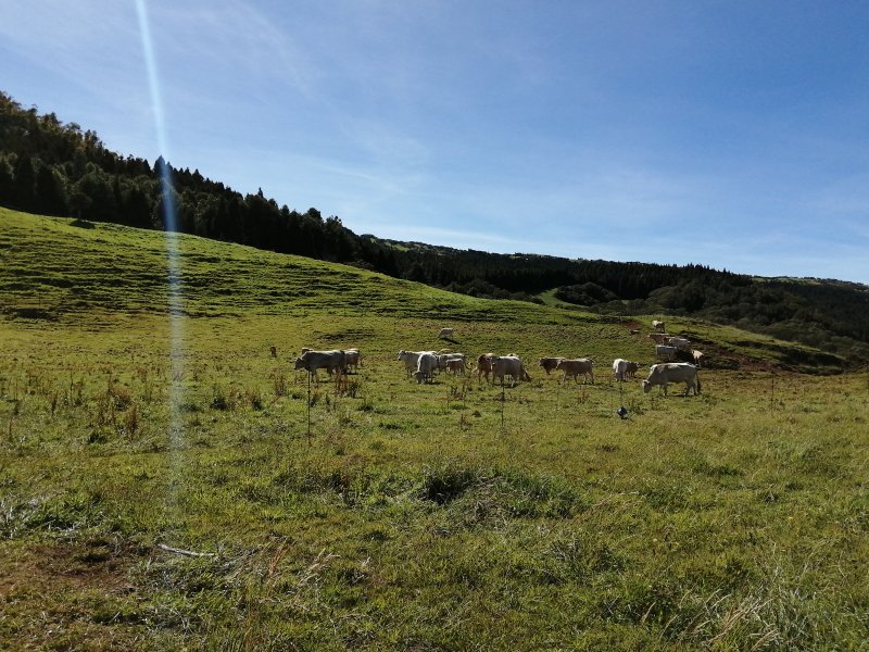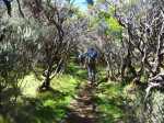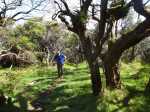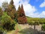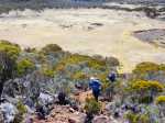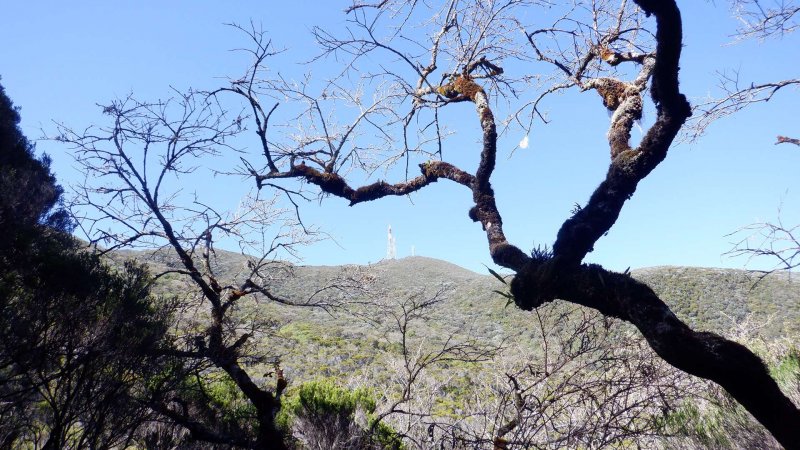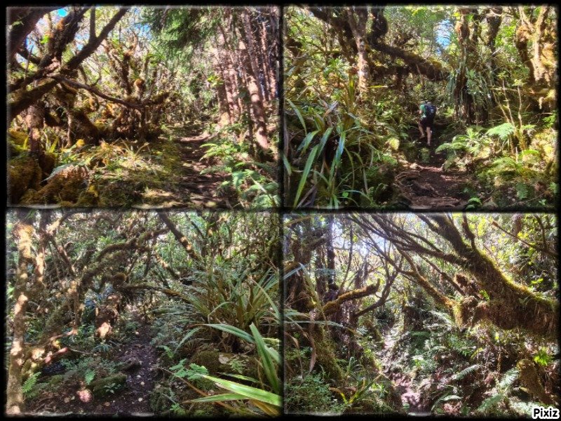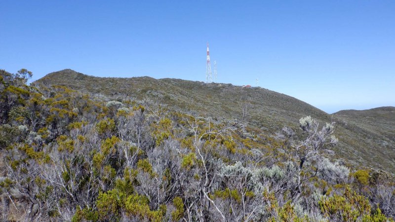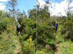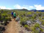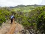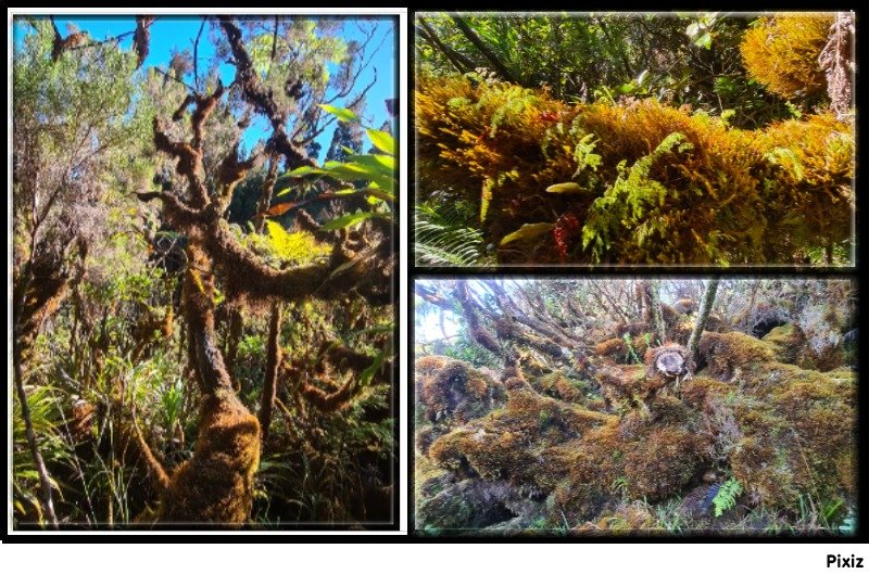 La randonnée débute ici à l'arrêt de bus du Bras des Calumets. Quelques mètres plus loin, en face du sentier remontant vers la croix du Piton des Songes, commence la Rue Emile Evan. Cette rue calme, rectiligne, sans circulation, permet d'apercevoir le Piton Textor, point culminant de cette sortie (Photo 1). Après une portion plane, quelques lacets en montée raisonnable et une descente en pente douce vers Bras Piton, la route effectue un grand virage avant d'arriver à l'aire de pique-nique du Piton Doré. Le sentier débute entre les kiosques et les cryptomerias. La pente est d'abord faible sous les conifères sur un sol constitué essentiellement de racines (Photo 2). La pente s'accentue pour contourner le cratère du Piton Doré recouvert de fanjans et bordé de cryptomerias (Photo 3). Une fois le cratère dépassé, le sentier effectue quelques virages et comporte beaucoup de raccourcis créés par les marcheurs. Rester sur la trace principale même si les racines sont encore présentes.(Photo 4). Plus haut, le sentier pénètre dans le Parc National en même temps que dans la zone de tir des militaires. Un panneau rouge est d'ailleurs là pour dissuader de quitter le sentier qui grimpe droit entre la lisière des cryptomerias et celle des bois de couleurs jaunis par les mousses (Photo 5). Plus loin, on est totalement immergé dans cette forêt semi-primaire comportant des passages techniques, de hautes marches et de rares portions planes (Photo 6). Quelques parties de cette forêt sont magnifiques avec les mousses et épiphytes recouvrant la totalité des troncs (Photo 7). Dans la montée, quelques rubalises attirent le regard. Elles ont été posées afin de signaler un trou profond au ras le sentier. Il s'agit de l'entrée effondrée d'un tunnel de lave de quelques centaines de mètres de long dont l'accès est très difficile (Photo 8). Après le gouffre, le sentier comporte de plus en plus de tronçons constitués de marches plus régulières que les naturelles rencontrées plus bas (Photo 9). On domine la Ravine Edouard sur la droite. On peut ainsi bénéficier des premiers panoramas sur la Plaine des Palmistes et le Piton des Neiges (Photo 10). Puis la pente faiblit jusqu'à devenir plate par moments. Le sentier, beaucoup plus propre serpente dans un superbe sous-bois de branles verts et d'ambavilles (Photo 11). Il traverse également quelques bosquets de petits tamarins envahis de vieux pieds de fleurs jaunes (Photo 12). La végétation disparaît graduellement et les branles verts, plus rabougris, prennent le relais. Quelques vaches parcourent les lieux. Si on ne les aperçoit pas toujours, les bouses dans le chemin les trahissent. Le sentier frôle le Piton de Caille avant de pénétrer dans une plaine herbeuse naturelle (Photo 13). Cette partie, qui peut être humide en période de fortes pluies, se traverse en quelques minutes en direction d'un petit col au pied du Piton Textor (Photo 14). La montée sur la terre rouge et les cailloux est rapide en rajoutant quelques mètres pour se rapprocher des 1000 m de D+ (Photo 15). Le paysage change encore et l'on retrouve les sentiers d'altitude avec les branles et les terres sableuses rouges ou orangées (Photo 16). Plusieurs itinéraires sont possibles du Textor jusqu'au Nez de Bœuf. Le trajet proposé contourne le Piton de Sable par le nord et file plein ouest pour éviter la route (Photo 17). A 2066 m, obliquer à gauche et rejoindre le parking du Nez de Bœuf par un très agréable parcours parfois ombragé (Photo 18). La pente est faible et la marche est une balade dans la verdure en profitant de nombreux panoramas vers la Rivière des Remparts (Photo 19). Traverser la route, rejoindre le parking puis emprunter le sentier remontant vers le sommet du Nez de Bœuf. A mi-parcours, obliquer à droite dans le bosquet de petits tamarins puis redescendre vers la route. Traverser à nouveau et pénétrer dans les prairies, guidé par les rangées de barbelé (Photo 20). Le GRR2, fortement creusé à cet endroit, est petit à petit remplacé par un autre longeant les clôtures. Bifurquer à droite au premier croisement et contourner les Trous Blancs par le nord. Si on ne les connaît pas, le tour par le sud ne rajoutera qu'une vingtaine de minutes. La descente vers les vastes zones d'élevage est rapide jusqu'aux premières clôtures (Photo 21). Après quelques virages, le sentier devient plus droit jusqu'au Tamarin Dodo qui mérite une respectueuse halte (Photo 22). Poursuivre jusqu'à la petite route sinueuse contournant le Piton Guichard. Traverser l'aire de repos et continuer sur le GRR2 bordé de cryptomerias sur un sentier large et caillouteux. Plus bas, au Grand Bras de Pontho, obliquer vers le sud, longer les prairies envahies de brandes et bordées de cryptomerias rougissants (Photo 23). Plus loin, un panneau signale la piste Sulzère. Partir à droite et longer de nouveaux pâturages envahis d'ajoncs par endroits. La pente est parfois forte sur un sentier étroit entre les clôtures (Photo 24). Prendre à droite à la fin du sentier et emprunter un très court tronçon du Chemin de la Grande Savane qui contourne le Piton Dugain (Photo 25). Au rond-point, repérer les poteaux du GRR2 et entamer la dernière partie sur une piste terreuse bordée par moment de tamarins des hauts (Photo 26). Cette piste longe au plus près le Grand Bras de Pontho, souvent caché par la végétation (Photo 27). La piste se termine à la Route des Herbes Blanches. Partir à gauche et longer la ravine jusqu'au pont de la RN3. Juste avant le pont, trouver l'étroit passage pour se rendre sous l'ouvrage et traverser pour emprunter le sentier en rive droite. Très fréquenté par les chevaux, il est malgré cela assez étroit et bordé de grands ajoncs d'Europe (Photo 28). On passe sans trop le remarquer au pied du Piton Desforges puis on termine au radier du Chemin Doret. Partir à gauche, rejoindre la Maison du Volcan ou le parking près de 