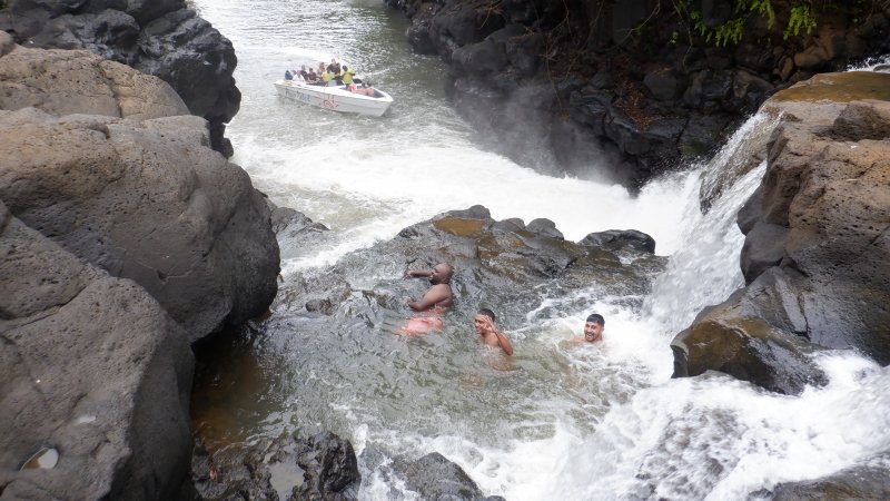 Toutes les cascades de l'île Maurice sont accessibles, principalement aux randonneurs. Certaines se voient de loin depuis des belvédères aménagés où viennent quotidiennement des centaines de touristes déposés par les taxis ou guides locaux. La cascade GRSE, abréviation de Grand River South East, est quant à elle visitée depuis des barques à moteur. Les touristes embarquent à Deux Frères, Grand River South East ou reviennent de l'Île aux Cerfs, remontent l'estuaire et s'approchent pour quelques secondes de la chute pour immortaliser l'écume sur leurs téléphones. Le nombre de bateaux est si important par moment qu'une file se crée et les visiteurs ne disposent que de quelques courtes minutes pour apprécier ce haut lieu du tourisme local. Si on dispose d'une heure, il est tout aussi facile de se garer sur la B112 puis de marcher vers la rivière, guidé par le bruit de la cascade. On aura certes du mal à l'apercevoir comme les touristes mais on aura cependant de belles vues depuis le haut. Il y aura également la possibilité de remonter un peu la rivière pour découvrir de beaux spots naturels baignés par les forts courants de la rivière ainsi que de nombreuses roussettes.