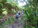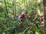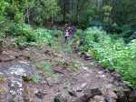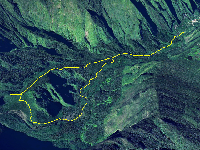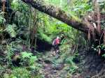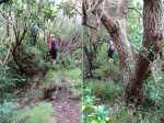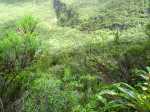 Après avoir effectué une montée vers le Bras d'Ouvrange et jeté un œil à la carte IGN, on imagine remonter facilement la Ravine de Grand Sable. Les zones blanches, synonymes habituellement des larges fonds de rivières recouverts de cailloux, sont si larges que l'on pense atteindre la Plaine des Sables en moins d'une heure. Une fois sur place on se retrouve dans une végétation touffue qui n'a rien à voir avec le terrain imaginé. Cette sortie s'adresse donc aux marcheurs aimant l'aventure et prenant plaisir aux hors-sentiers aléatoires dans des forêts touffues envahies de goyaviers et pailles sabres. La boucle emprunte le sentier classique de Grand Pays puis l'itinéraire décrit jusqu'au Bras d'Ouvrange, délaissé pour l'occasion. Le parcours privilégie une remontée de la Ravine de Grand Sable puis sa rive gauche en longeant tout d'abord une minuscule ravine envahie de végétation, avant de suivre le parcours d'un de ses affluents. Si le trait bleu de la carte représente bien cet affluent, il faut en revanche beaucoup d'imagination pour le reconnaître sur le terrain. Le GPS s'avère donc indispensable pour rester à l'endroit où la carte situe le cours d'eau qui n'a pas dû couler depuis des siècles. Les plantes y poussent si serré que même les tangues ont délaissé les lieux. Une fois le sentier retrouvé, il faut affronter une très longue descente de Grand Pays jusqu'à Grand Galet. Si elle repose les muscles qui ont chauffé dans le hors-sentier, les chevilles sont souvent sollicitées dans les parties pierreuses sous les filaos. Un petit écart a été proposé pour se rapprocher du sommet du Piton de 1262 m, non baptisé.