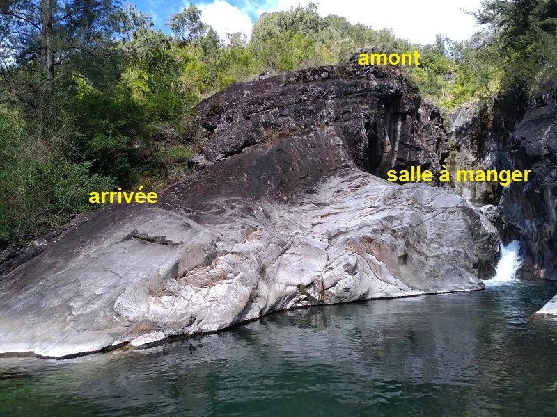 L'amont et l'aval de la paradisiaque Salle à Manger sont accessibles mais attention : même sèche, la roche est naturellement glissante !