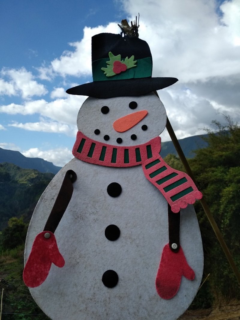 Sur le chemin du retour, des pères Noël veillent sur le champ de haricots :-)