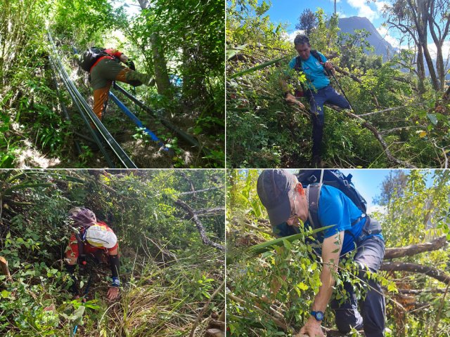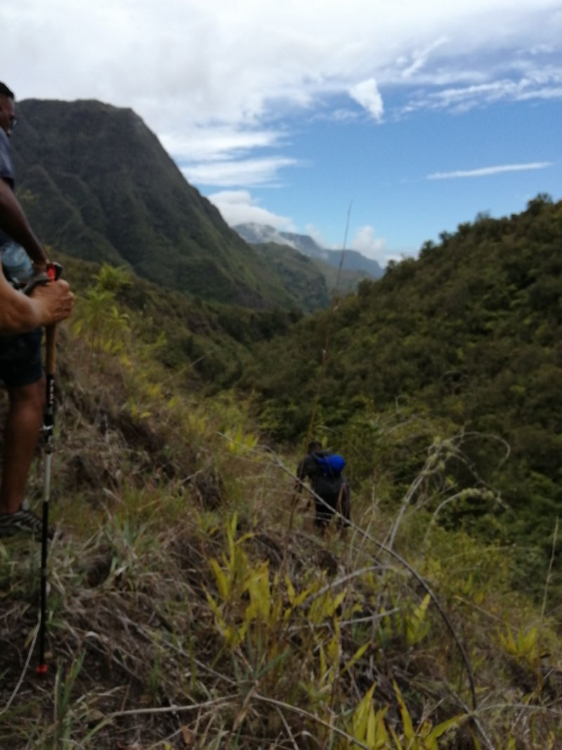 En 2021, Hervé a aidé des habitants de Mare d'Affouches à installer 1200 m de tuyau pour capter l'eau de la Ravine José Lebeau. Repérages, transport et assemblage des tronçons de 25 m a demandé d'intenses efforts. Il nous conduit aujourd'hui le long de cette canalisation pour nous montrer l'ampleur du travail et nous faire découvrir une région très peu fréquentée par les randonneurs.