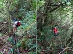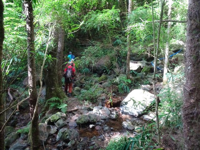 fait le 13/12/2024. On a eu quelques hésitations par moment mais globalement le sentier se suit bien. Le GPS ne fonctionne pas très bien sur ce secteur, lisez donc bien la fiche avant de vous lancer. La partie finale de la descente vers la salle à manger n'est pas très évidente; ça peut être utile d'avoir une petite corde (moins de 10 m). Attention, lors de la descente vers la salle à manger, il y a un sentier bien marqué qui part sur la gauche (à une 20ène de mètres du début de la descente) et qui peut induire en erreur. Il faut prendre le sentier de droite. Ceci dit la descente sur la gauche (équipée de cordes) amène à un joli coin également où on a de belles vues sur la rivière.