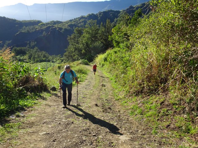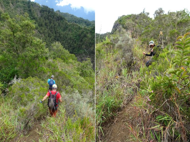 @pirlouis: nous avons emprunté hier ce tronçon indiquant Mare dAffouches 30 minutes. Le sentier n'est plus entretenu, on était 5 à chercher dans diverses directions pour finir par retomber sur la très vieille trace. Vigne marronne et autres joyeusetés au début. Généralement très étroit, parfois très glissant ou la terre meuble s'affaissant, mais de superbes panoramas. On finit par retrouver 6 ou 7 tuyaux d'eau et là, c'est presque un sentier normal. En fait c'est car les tuyaux sont entretenus par les rares habitants. Le sentier finit par déboucher dans le jardin d'une famille. Le monsieur très sympa nous a dit que cette vieille trace est fermée depuis 10 ans mais rien ne l'indique, donc il a régulièrement des visiteurs comme nous car les autorités ne se décident ni à le fermer officiellement, ni à le réhabiliter. Nous nous sommes excusés bien sûr car il semble qu'on aurait pu déboucher un peu plus loin de chez lui... Mais on n'a pas vu.