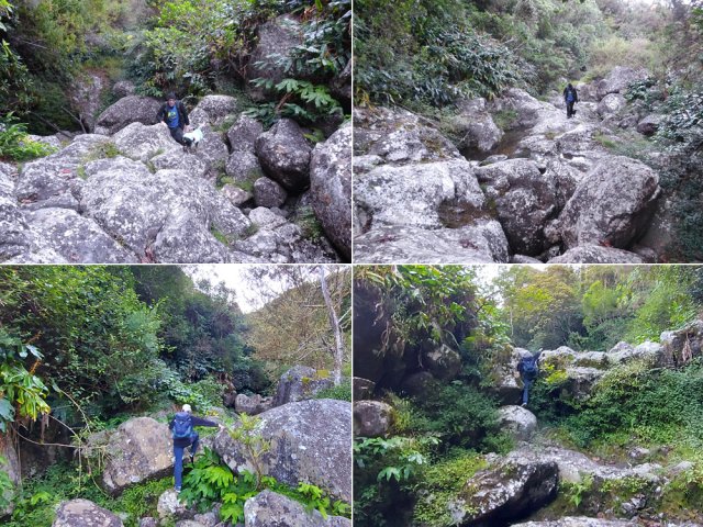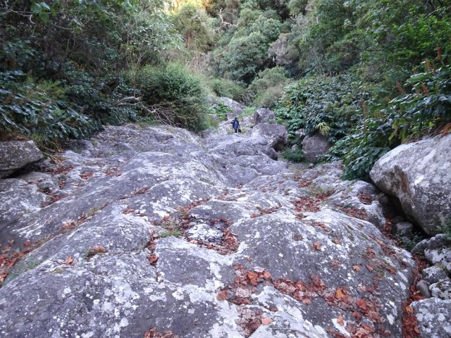 Un écart réservé aux amateurs de remontées de ravines a été rajouté pour explorer cette curieuse vallée, courte mais profonde, du Trou de Jarre. Le fond de la Ravine de la Fontaine, constitué de grosses roches empilées ou de longues plaques basaltiques demande un effort différent de celui fourni sur la boucle pastorale.
