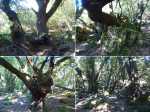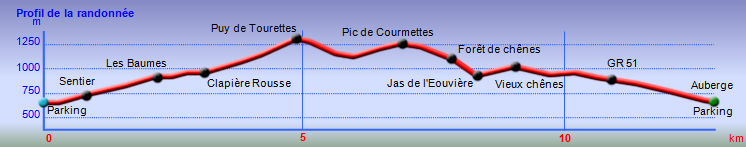 La randonnée débute au parking des visiteurs à Courmes. Partir vers le village pour en apprécier le calme et peut-être repérer l'auberge si réservation d'un repas pour midi (06 75 49 02 58). Rejoindre l'église puis le départ du sentier. Le GR51 part sur la droite entre les arbres. Il comporte des marches en pente faible en frôlant de beaux arbres (Photo 1). On parvient à un chemin empierré d'où partent plusieurs sentiers. Prendre le plus à l'Est en direction de Clapière Rousse. Ce parcours en pente faible longe les murets entourant les champs du siècle dernier, désormais recouverts de bois de chênes (Photo 2). Les beaux arbres sont fréquents en bordure (Photo 3). On en verra encore beaucoup durant la boucle et les derniers feront oublier un peu ceux rencontrés au départ. Le sentier monte un peu plus et les premiers panoramas apparaissent. On ne les quittera guère durant 5 heures. Hormis quelques lacets courts et raides, le parcours est sans difficulté. Le sentier traverse de très belles forêts de chênes verts clairsemés où les sangliers s'en donnent à cœur joie pour chercher leur pitance en creusant le sol de leur groin (Photo 4). Le sol est sableux ou recouvert de petits cailloux. Les clairières ouvrent des fenêtres sur le paysage (Photo 5). Au premier croisement, laisser le GR puis poursuivre plein Nord en direction de St-Barnabé. La végétation diminue et le sentier en corniche offre des panoramas à 180° (Photo 6). On devine les petits villages de Cipières et Gréolières qui semblent bâtis au bout du monde (Photo 7). La fin de la portion vers le nord, dans l'ombre matinale de l'ubac, permet de rejoindre Clapière Rousse, un plateau calcaire encombré de pierres (Photo 8). Parmi les nombreux sentiers, emprunter celui obliquant à droite et remontant au Puy de Tourettes. Avant de monter, profiter encore des panoramas sur les Barres de Cavillore en cherchant des yeux la forteresse troglodytique dans la falaise (Photo 9) ou vers le Bau de Saint-Jean (Photo 10). Une large piste monte en direction d'un petit bois de pins. Après le petit bois, poursuivre encore un peu sur ce large chemin qui peut être gelé les petits matins d'hiver (Photo 11). La piste se transforme sans transition en sentier à travers les garrigues assez clairsemées (Photo 12). A 1100 m d'altitude, on rencontre de plus en plus de traces de vie pastorale. Le sentier monte assez fortement entre les pierres calcaires. Des murets ont été aménagés pour gagner en terre plus fertile. Une grande bergerie dans une doline pouvait abriter un beau troupeau (Photo 13). A 1200 m, ne pas manquer le spectacle des Alpes enneigées (Photo 14). La fin de la montée ne change guère entre genêts lavandes et thyms. Les vents forts battent le sommet et on ne tarde pas à entamer la descente vers le col entre le Puy de Tourettes et le Pic de Courmettes sur un sol dénudé avec vue sur la montée à venir (Photo 15). Le bas est occupé par des pâturages naturels dominés par le puy dénudé (Photo 16). Entamer la montée beaucoup plus verte à travers genêts, buis et jeunes pins sur un sentier assez facile (Photo 17). Les occasions sont omniprésentes de revoir les Barres de Cavillore et les flancs de plus en plus rocheux du Pic de Courmettes (Photo 18). Les derniers 100 m comportent de multiples petites sentes créées par les troupeaux et on peut facilement se tromper de trajet mais sans aucune conséquence puisqu'on a le sommet sous les yeux. Les “neiges éternelles” sont ici noires car les moutons y laissent leurs déjections et les troupeaux semblent y être nombreux. Le 360° de panorama ne fait pas regretter l'effort de la montée car on peut apercevoir la Corse, les Alpes et une très grande partie de la côte sans parler des pics déjà aperçus depuis le départ (Photo 19). Le sol est totalement nu et l'on peut se balader au sommet sans obstacle (Photo 20). A noter la présence d'un chêne esseulé au sommet qui bénéficie toute l'année des vents parfois violents. On a une très belle vue sur le sommet depuis le sentier de descente vers Courmes. Délaisser ce sentier pour revenir au sommet et trouver le sentier filant sud-est vers le Jas de l'Eouvière et le Domaine de Coumettes. La descente, parfois forte, emprunte un sol désertique recouvert de cailloux, de marches souvent hautes et de parties glissantes. Un bois de chênes verts se présente et permet de marcher à l'ombre (Photo 21). La pente ne diminue pas pour autant ; les lacets se multiplient ainsi que les glissades. On traverse même plus bas une zone rocheuse (Photo 22). Le sentier semble s'arrêter à une barrière. Franchir et refermer le portillon avant de poursuivre tout droit jusqu'au Jas de l'Eouvière, une imposante bâtisse en ruine avec de beaux restes de voûtes. A quelques mètres, une nouvelle clôture ferme le passage mais un panneau indique le Sentier des Chênes. Franchir la clôture et marcher en direction des premiers arbres. Ce sentier très agréable amène au cœur de cette magnifique forêt qui a un peu souffert des dernières tempêtes. Il y a des chênes verts partout, même sur les flancs de la falaise qui les domine (Photo 23). On parvient à un premier spécimen, énorme, évalué à 10 siècles. Deux personnes peuvent l'entourer de leurs bras mais ce sont surtout les grosses branches qui impressionnent le plus (Photo 24). Prendre son temps et tenter de découvrir les autres ancêtres dans la zone rocheuse, dont celui évalué à 12 siècles qui pourrait gagner le concours d'arbres tortueux (Photo 25). Difficile de s'arracher de ce lieu unique pour emprunter le sentier de descente sur un sol très caillouteux en longeant de nouveaux pâturages et en profitant des vues sur le domaine (Photo 26). En arrivant à la piste, partir à droite en direction de Courmes et retrouver les panoramas classiques de la région (Photo 27). A la citerne incendie, bifurquer à droite puis continuer dans le sous-boi