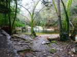 La randonnée débute au parking à quelques mètres du pont fermé par une barrière. Des panneaux affichent le règlement très détaillé du parc et un autre souligne les interdictions de passage en cas de vent, orages ou fortes pluies pouvant créer des crues subites (Photo 1). Commencer par traverser la Braque par le pont (Photo 2). Cela permet d'évaluer le niveau de l'eau. Si le cours d'eau est paisible, ne pas hésiter à se lancer dans la boucle (Photo 3). Le cheminement le long de la Brague est un pur plaisir sur un chemin pavé épousant les méandres de la rivière (Photo 4). On rencontre très vite les barrages naturels créés par l'accumulation de couches de calcaire favorisant les petites chutes d'eau (Photo 5). Le sentier se rapproche parfois de l'eau et la marche s'effectue sur les larges plaques calcaires qui peuvent être glissantes (Photo 6). La remontée s'effectue toujours en rive droite. Prendre tout son temps pour cette remontée paisible le long de grands bassins incitant à la baignade ou à la pêche (Photo 7). Il est possible de quitter le sentier officiel pour regagner la rive boisée, idéale pour des pauses avec des enfants (Photo 8). Les barrages moussus sont très nombreux tout au long du parcours (Photo 9). On rencontre également des racines qui agrémentent les berges ; elles peuvent amuser les enfants (Photo 10). Poursuivre la remontée sans aucune difficulté sur ce sentier pavé qui permet de comprendre pourquoi il ne faut pas l'emprunter en cas d'inondation (Photo 11). Lorsque les barres rocheuses sont trop proches de l'eau, des sentiers s'en éloignent pour franchir les obstacles (Photo 12). Plus haut, on frôle le pont qu'enjambe la RD604 en direction de Valbonne. Vers la fin de la montée, le sentier traverse un petit ruisseau sur une passerelle pour continuer, toujours en rive droite (Photo 13). Vers Peidessale, on prend une courte portion en rive gauche. A la petite route des Moulins, repartir en rive droite et délaisser le sentier (fermé) montant à Valbonne. Suivre les panneaux du circuit recommandé jusqu'au prochain croisement. Au lieu de filer à droite vers Valbonne, continuer sur la piste DFCI de la Béguine qui monte en pente douce dans une forêt de chênes (Photo 15). Couper une large piste et poursuivre sur la même piste DFCI mais en descente cette fois (Photo 16). Franchir la Piste du Moulin de l'Ange et marcher en direction d'un banc de repos. De là, plusieurs sentiers partent vers l'est. Prendre celui longeant la piste. Il est étroit et comporte quelques pierres qui gênent plus les vététistes que les randonneurs (Photo 17). Le sentier s'élargit dans le sous-bois et comporte quelques portions boueuses s'il a plu (Photo 18). La marche s'effectue presque à plat dans le calme (Photo 19). Rapidement, on traverse le Bruguet pour marcher en rive droite. Il est souvent à sec même s'il comporte ça et là de petits bassins d'eau stagnante (Photo 20). La vallée, très boisée, accueille de nouveau un sentier qui a été pavé (Photo 21). S'il ne l'est pas, il est toujours de bonne qualité au milieu des arbres moussus (Photo 22). A la borne 388, si l'on file tout droit, on retrouve le sentier pris pour remonter la Brague. Obliquer donc à droite et entamer une montée un peu raide sur les marches du sentier de découverte (Photo 23). Créé il y a des années, les panneaux vieillissants donnent encore des explications sur la flore (Photo 24). On parvient dans une pinède bordant un très grand carrefour où la circulation est intense. Contourner le trafic par le nord et prendre aussitôt le sentier près d'un parking dédié aux sportifs venant s'entraîner sur cette boucle (Photo 25). Poursuivre sur un long tronçon de ce sentier en sous-bois sur terre ou dans quelques portions caillouteuses (Photo 26). On parvient à la route menant au Pont de la Veirière. Traverser la route et reprendre le sentier 50 m plus loin. Ce sentier, fréquenté des VTT, est toujours le même au milieu des plantes méditerranéennes (Photo 27). Il faut parfois regarder la carte tant le sentier rencontre de croisements. Il se rapproche de la Braque et de la fin de la boucle. La dernière partie suit au plus près la courbe de niveau dans un bois pentu et assez touffu (Photo 28). Lorsqu'il se met à descendre, on parvient à la Piste des Tamarins à deux pas de la Brague. Traverser la rivière par le pont et rejoindre le parking.