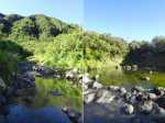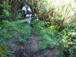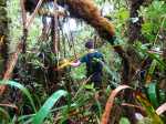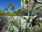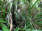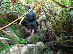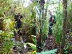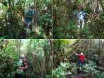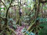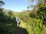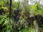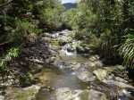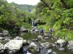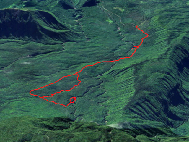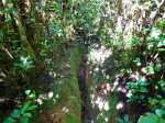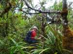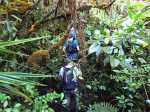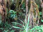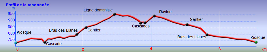 La randonnée débute à la fin de la route menant au belvédère de l’Éden. Stationner au premier kiosque rencontré, juste en face du sentier de Bélouve. L'ancienne piste est désormais un sentier de plus en plus envahi de fougères et de sabres (Photo 1). On marche à plat en coupant quelques petites ravines avant de se rapprocher du Bras des Lianes qu'on entend de plus en plus couler sur la droite. La première bifurcation permet de se rapprocher du rempart dominant la haute cascade. Attention aux glissades sur les racines humides en descendant au pied de la chute d'une vingtaine de mètres de hauteur. Il faut remonter un peu le bras pour arriver au pied du bassin (Photo 2). Comme il est trop tôt pour la baignade, reprendre la forte pente et retrouver le sentier. Un peu plus loin, une nouvelle sente permet de voir le haut de la chute dominée par la chaîne du Bras des Lianes (Photo 3). Le troisième embranchement amène quant à lui à la belle arche double située en rive droite du Bras des Lianes. Un grand bassin, connu des baigneurs, est très agréable si le niveau de l'eau n'est pas trop important (Photo 4). Reprendre le sentier en direction de Bélouve. Malgré son manque d'entretien il demeure facile à suivre malgré les fougères, goyaviers ou flaques de boue qui crottent très vite les chaussures (Photo 5). 30 minutes après le départ, on se rapproche du gué du Bras des Lianes entouré de beaux bassins (Photo 6). Le franchir et poursuivre sur le même sentier. Comme cette randonnée ne comporte pas de panoramas, profiter alors de la nature qui offre, tous les 50 mètres, des endémiques, orchidées, mousses et fougères (Photo 7). Après une heure de marche en sous-bois, repérer le discret croisement de sentiers. Emprunter celui de gauche qui pénètre immédiatement dans les goyaviers (Photo 8). Le paysage ne change pas du tout (Photo 9). Ce sentier, noté sur les cartes, a dû être important à une époque puisqu'il ressemble à s'y méprendre à celui de Bélouve (Photo 10). On monte ainsi près de 100 m pour atteindre la ligne domaniale qui n'en a plus que le nom puisque rien ne la distingue du paysage. Il n'est d'ailleurs pas possible de la suivre pour marcher vers le sud et atteindre le Bras de Zayonne. On se retrouve donc sur un sentier très étroit qui serpente au grès des plantes et accidents du relief. Les rares rubalises rassurent quand il faut slalomer entre goyaviers, racines moussues de pimpins ou palmistes aux aiguilles acérées (Photo 11). Quelques pentes assez fortes sont bordées de goyaviers bien utiles pour ralentir la descente (Photo 12). Après un beau point de vue sur la Forêt des Lianes, une nouvelle descente abrupte mène à une première ravine (Photo 13). Débute la partie la plus difficile de cette boucle. Il faut emprunter de courts tronçons de ravines et les quitter presque aussitôt pour traverser une jungle moussue amenant à une nouvelle ravine. Hormis la première, elles sont étroites, encombrées (Photo 14) et le sentier qui s'en éloigne n'est pas toujours facile à repérer (Photo 15). Toutes les petites ravines se ressemblent, tout comme les sentiers (Photo 16). La vitesse de marche reste lente en raison d'une végétation assez fournie avec un sentier pas toujours évident à suivre (Photo 17). On passe à un moment près du sentier emprunté par les canyonistes mais il est très pentu et mène aux bassins amont. Continuer vers l'est pour atteindre le bassin aval par une traversée hasardeuse qui suscite hésitations et risques d'égarement. Pimpins moussus et bois de couleurs ne sont pas encore totalement dévorés par les goyaviers. Il faut se méfier avant tout des épines de palmistes et ne s'aider d'un arbre qu'après l'avoir observé (Photo 18). Une bonne descente rapproche du bras en empruntant un dernier fond de ravine moussu (Photo 19). Une fois sur les berges on peut enfin respirer car on a quitté pour un temps cette jungle. Remonter le cours d'eau en direction d'une cascade que l'on devine plus haut (Photo 20). Un joli bassin de baignade est alimenté par une haute chute. Tout près, une grotte peut servir d'abri en cas de bivouac (Photo 21). Après une agréable pause, reprendre la direction de l'amont en repérant le sentier étroit en rive droite qui s'atteint par une courte escalade (Photo 22). En quelques minutes, on rejoint un bassin encore plus vaste et sa petite cascade (Photo 23). Après les pauses casse-croûtes ou baignades, retrouver le sentier étroit pris pour venir et remonter jusqu'au point 935 sans se perdre dans les mini-ravines et leurs échappatoires. On retrouve la ravine en eau traversée 2 heures avant. Débuter la descente de ce petit cours d'eau très agréable. On rencontre rapidement une première cascade empêchant de poursuivre par le lit. L'éviter par la rive gauche avant de poursuivre. Il y en aura encore deux autres à franchir en rive gauche (Photo 24). Les contournements sont plus sportifs et nécessitent de bons freins (Photo 25). La descente du lit est presque ludique avec de magnifiques paysages, des petits bassins et de belles chutes d'eau (Photo 26). Après une grande partie sur plaques basaltiques à côtoyer bassins et vasques (Photo 27), repérer sur la gauche un énorme rocher coiffé de branles moussus. A quelques mètres de ce mastodonte, le sentier tout aussi étroit que les précédents, débute en rive gauche. La jonction avec le sentier de Bélouve débute dans cette belle Forêt des Lianes qu'on traverse depuis plus de 6 heures (Photo 28). Emprunter le lit d'une minuscule ravine à sec aperçue le matin et rejoindre le sentier officiel. Partir à droite puis repasser le gué du Bras des Lianes, l'arche et la cascade avant de retrouver le kiosque de l’Éden. Fin de cette journée sportive en totale immersion dans la verdure.