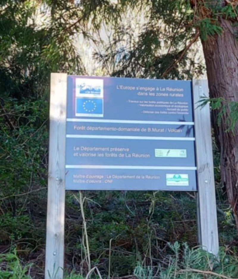 Afin d'égayer la boucle nous y avons ajouté l'exploration des deux cratères du piton Mahot. Le piton Mahot est bien sur le domaine public (forêt departemento- domaniale de Bourg Murat, comme l'indique un joli panneau au pied du piton à l'entrée de la petite forêt de cryptomerias (photo 1) et nous pouvons donc le parcourir la conscience tranquille (photo 2).