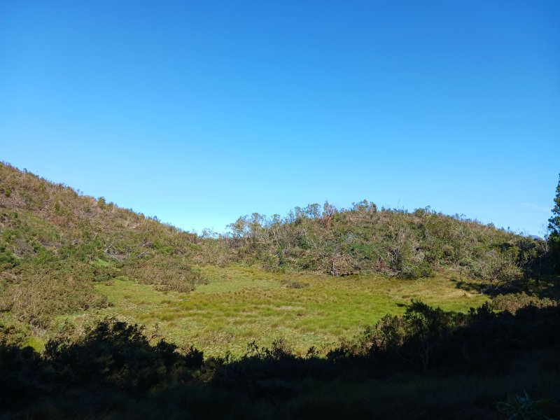 Boucle faite ce jour, je pensais pouvoir rejoindre la boucle de la Grande ferme qui n'est pas très loin mais le sentier en pointillé sur la carte est privé, à grand renfort de barrière et de panneaux d'interdiction. Pour rallonger cette boucle qui n'est pas très longue, nous avons poursuivi jusqu'au sentier botanique de Notre-Dame de la Paix pour un total de 20 km. Nous avons apprécié la fraîcheur en matinée, les larges panoramas sur les principaux sommets de l'île, les jolies vaches, les collines ondulantes d'un beau vert. C'est un endroit agréable pour se dérouiller les jambes après un cyclone qui a fermé beaucoup de sentiers. Il y'a même quelques tables de pique-nique le long de la route.